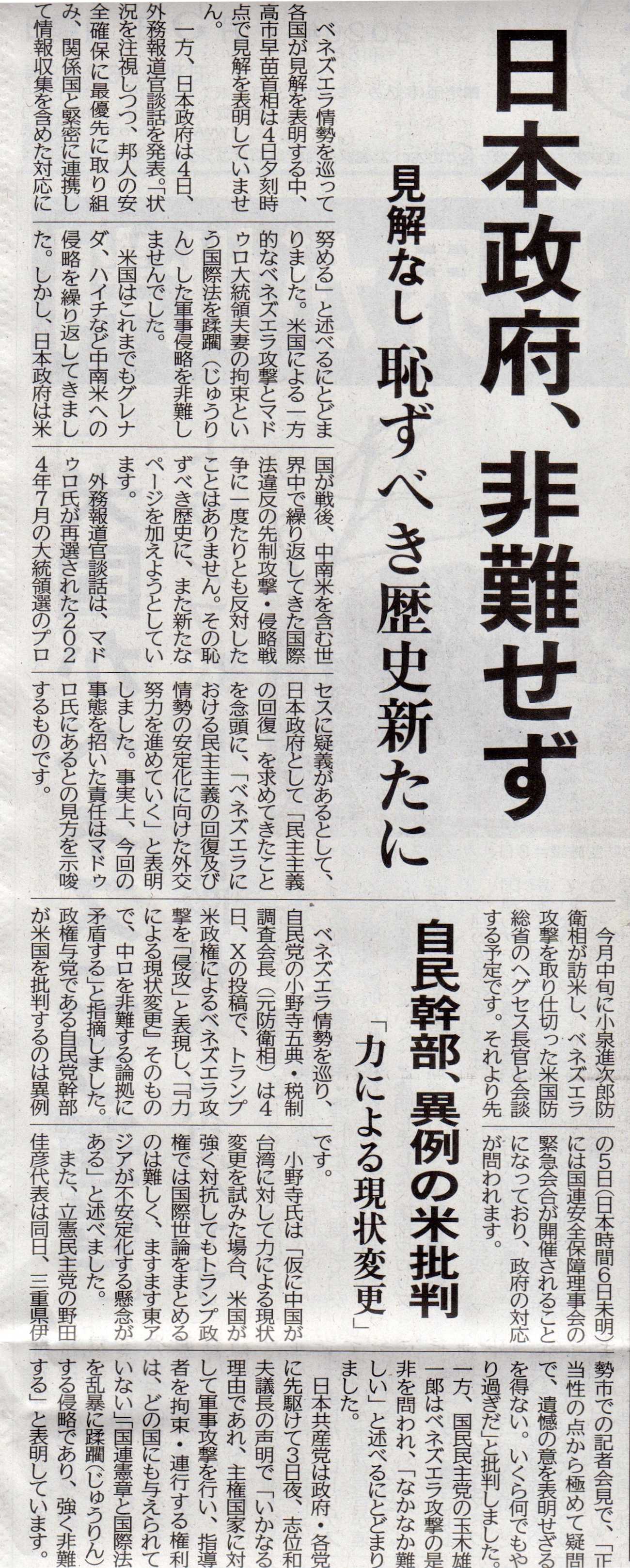 狂ったとしか思えないベネズエラに対するトランプ大統領の蛮行、世界の多くの国がアメリカの行動に批判的な見解を述べている、言わざるを得ないというのが素直な気持ちだと思う。さらに、ベネズエラに関しては石油などの管轄は永久にアメリカが保持し、利益はアメリカとベネズエラで分け合うという。