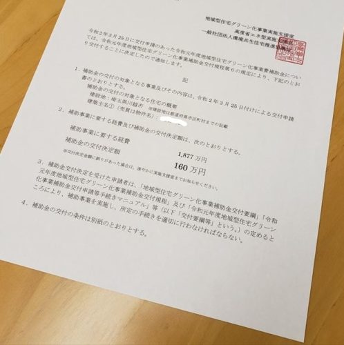 今年度の地域型住宅グリーン化事業の補助金は、コロナの関係でどうなることかと心配していましたが、