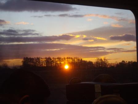 今日も早起きして移動です。JRに乗っている間に朝日が昇ってきます。