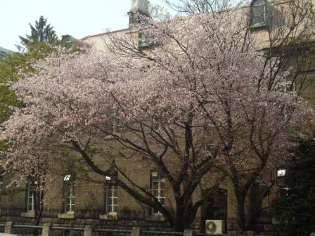 一昨日通りかかった、札幌市資料館脇の桜です。「早い桜はこのとおり満開です」って書こうと思ったら、その日が正式に札幌の桜開花宣言の日だったそうで…。