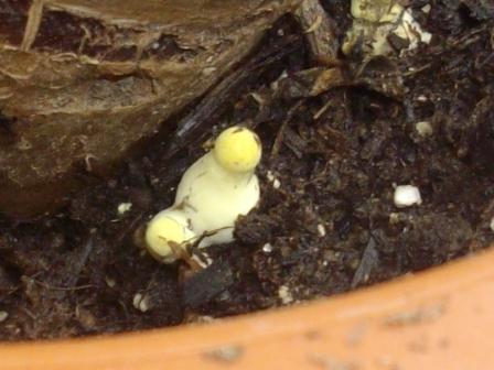 先日、「新生物?」と記事を書きましたがまた同じ鉢から見慣れない物体が。