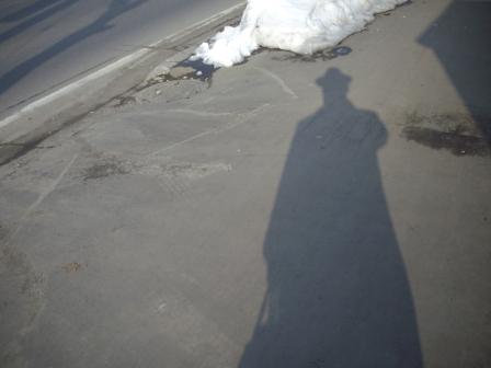 バスを待つ間、ふと気がつくと自分の影が。ちょっと前までこの時間、薄暗かったんですけど、日差しに力強さがでてきました。