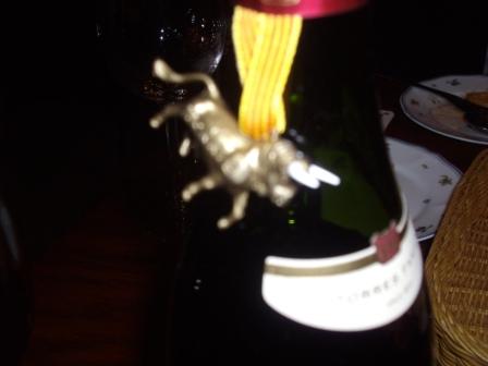 普通はボトルについているチャームは黒い牛なのですがこれは同じ「サングレ・デ・トロ」でも高級ブランドなので黄金の牛がついています。