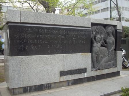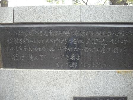 有島武郎は木田金次郎と交流を持ったのち、大正7年に「生まれいずる悩み」の連載を開始し、その後大正12年に自殺してしまいます。この石碑は「小さき者へ」の一文が刻まれています。