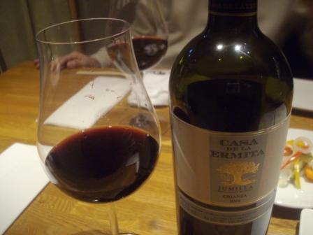 これはI税理士と流れた二次会のお店。ワインリストが豊富でして…頼んだのはスペインワイン・「カサ・デ・エルミタ」