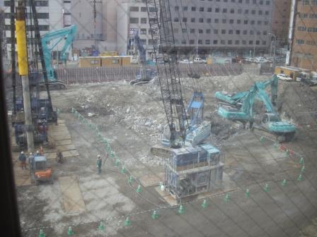 画像は、現在進行中の旧北海道拓殖銀行本店の改築現場です。仕事で訪問したビルからちょうど真下に工事現場を見下ろすようなアングルで写真を撮れました。