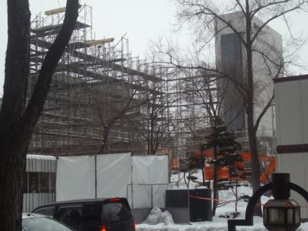 制作3日目に入った雪像づくりです。毎日ここの横を通ります。