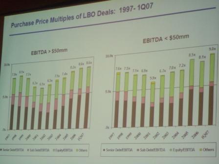 <レバレッジドバイアウト>買収総額で2003年まで500億ドル程度だったものが2006年は2330億ドルへ。2007年前半だけで3935億ドルに激増。