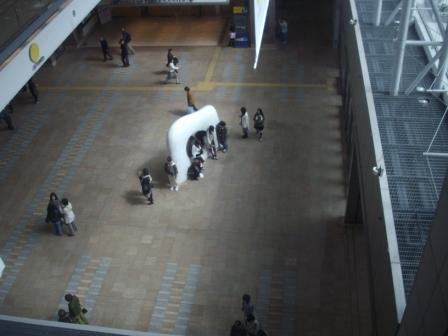 昨日に続いて大丸のエレベーターからJRタワー内部を撮影した画像です。JRさっぽろ駅に続くコンコースに置かれている白い彫刻が見えます。