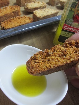 オーガニックなのに、味は決して高級オリーブオイルにも引けを取らない、お気に入りのカーボネールの有機オリーブオイルをビスコッティに付けてお召し上がりください。