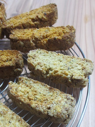 有機トマト&ハーブ味、コーンミール&ハーブ味、2種類のビスコッティとオーガニックオリーブオイルをセットにした味わいセット??です。