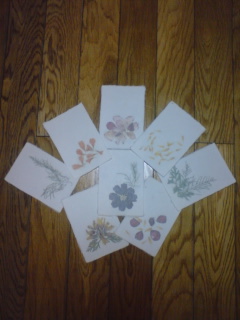 その後、体験で紙すきをさせていただいて、その和紙でハガキを作りました。作業場に沢山の野の花が置かれ、好きなように入れてよいのですが、みんなで凝りに凝り、これまた時を忘れました。