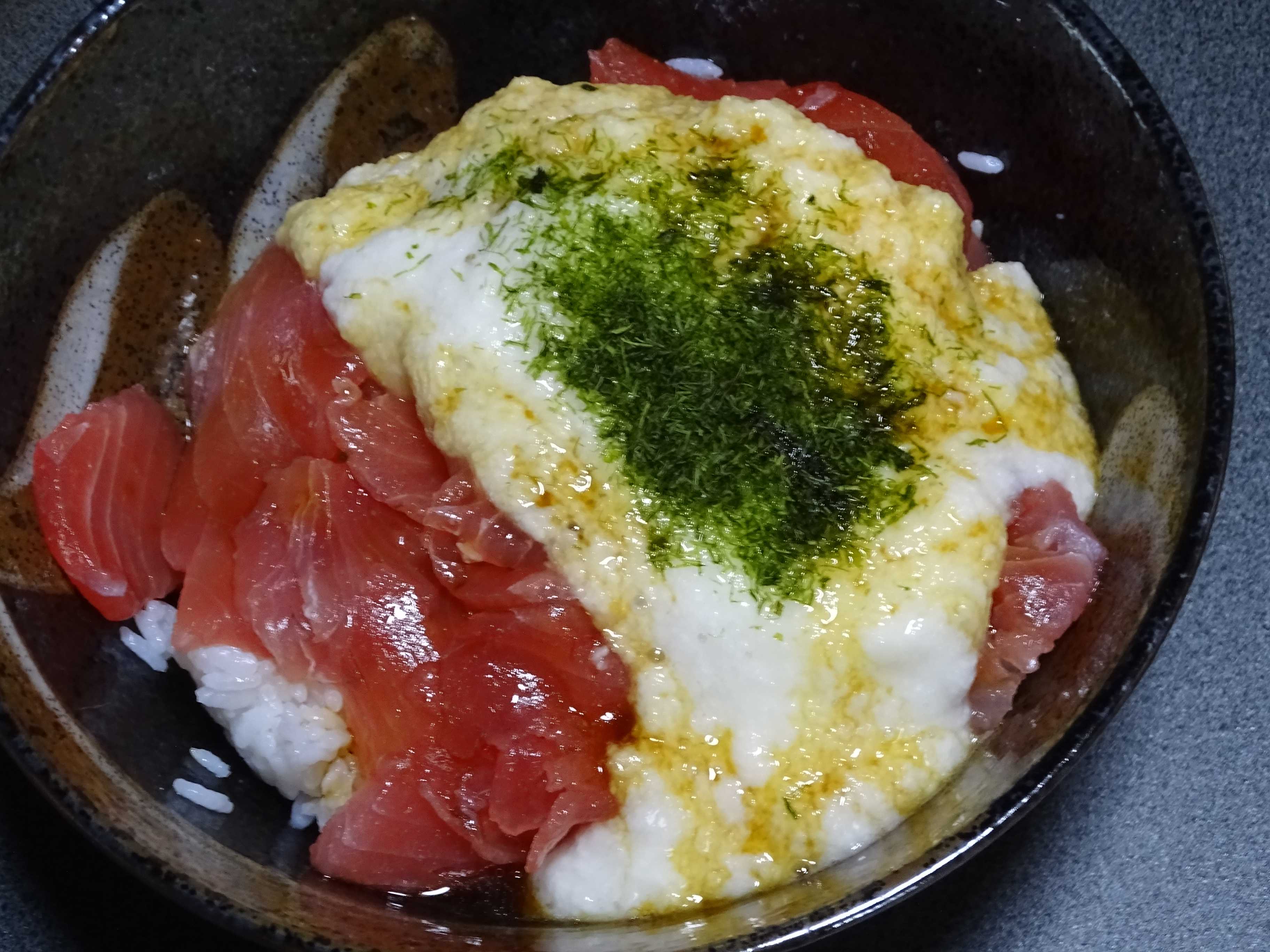 刺身は・・カルパッチョ・・と思ったんだけど・・面倒なので山かけ丼にする事に・・・