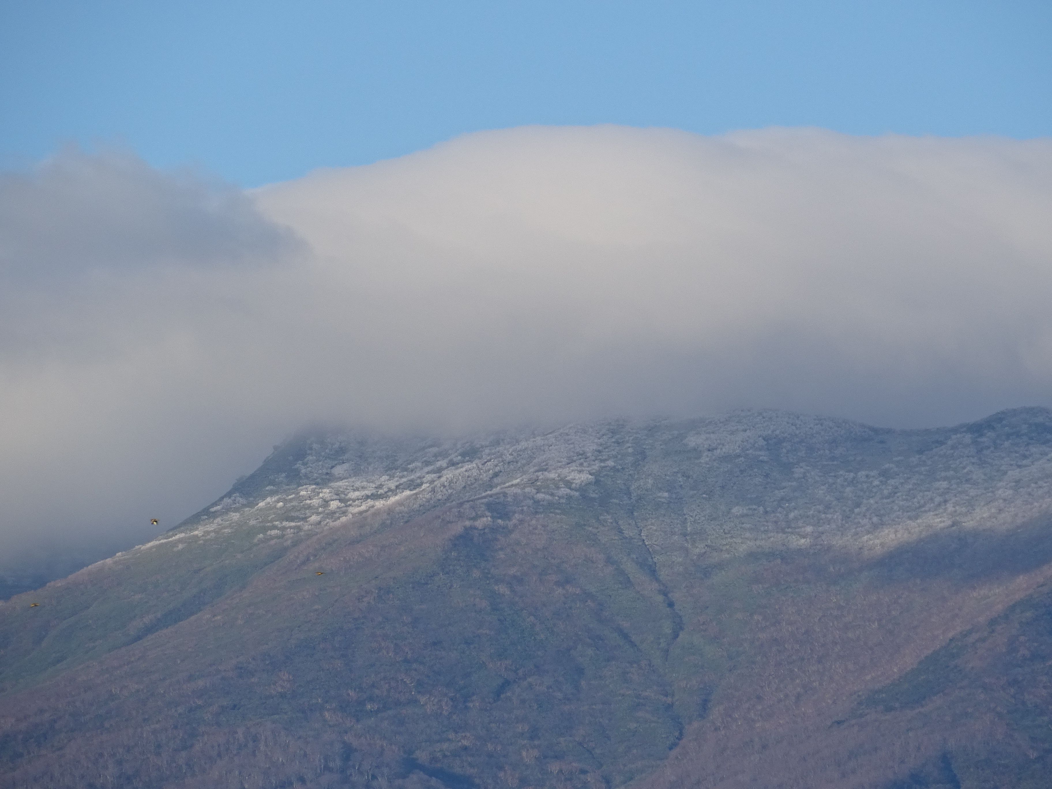 雲の下の方に白く・・・これで後一週間もすればタイヤ交換しないと・・・