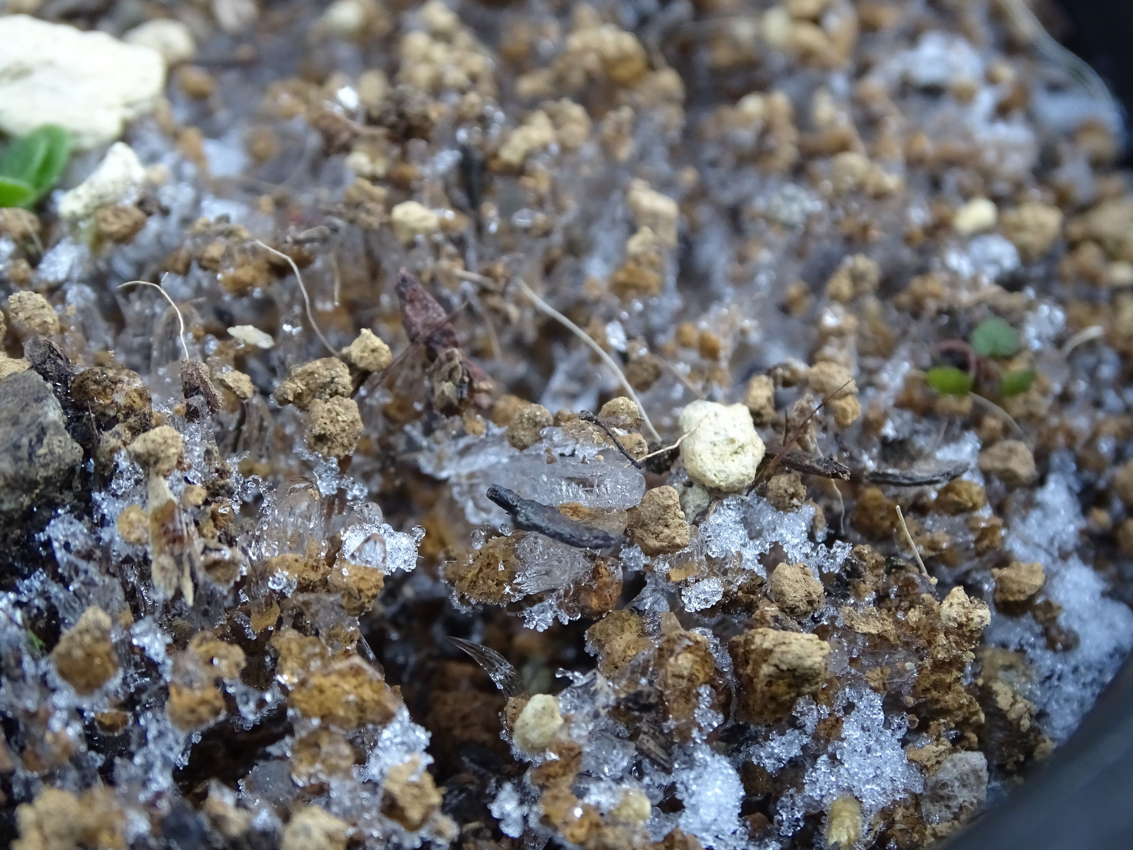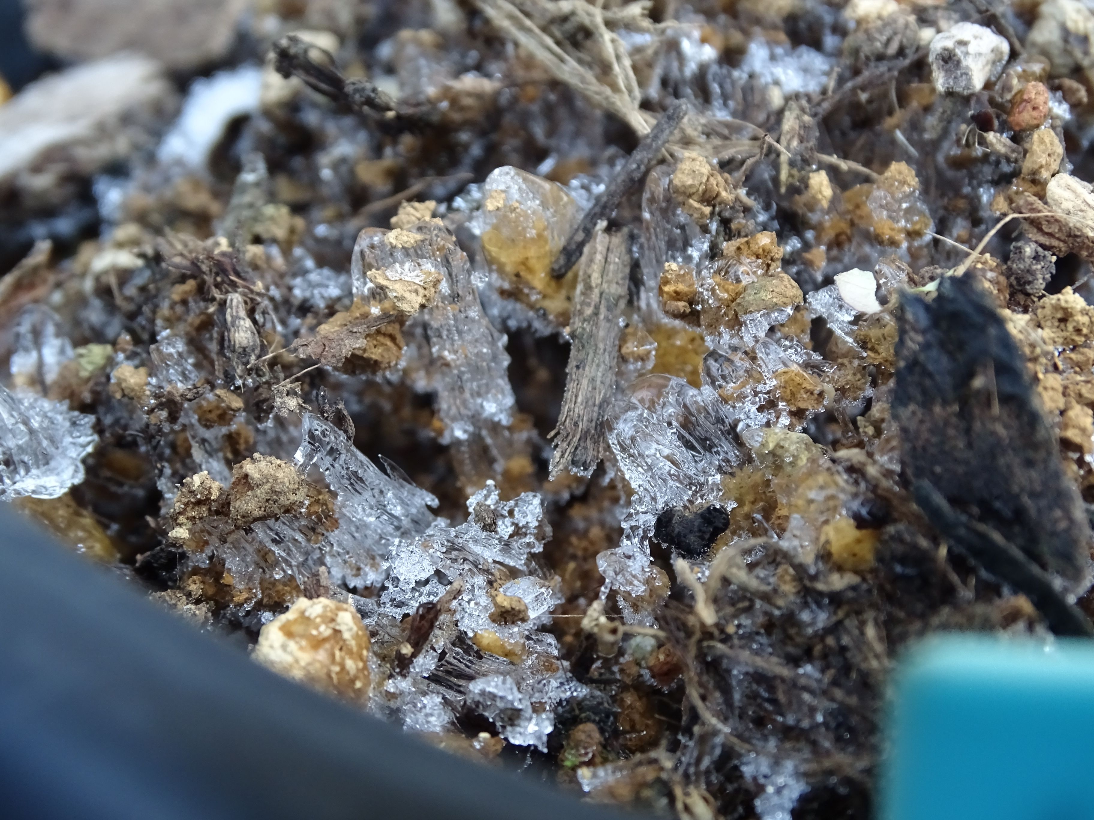 鉢には霜柱・・・これを観たら流石に寒いと思っちゃった