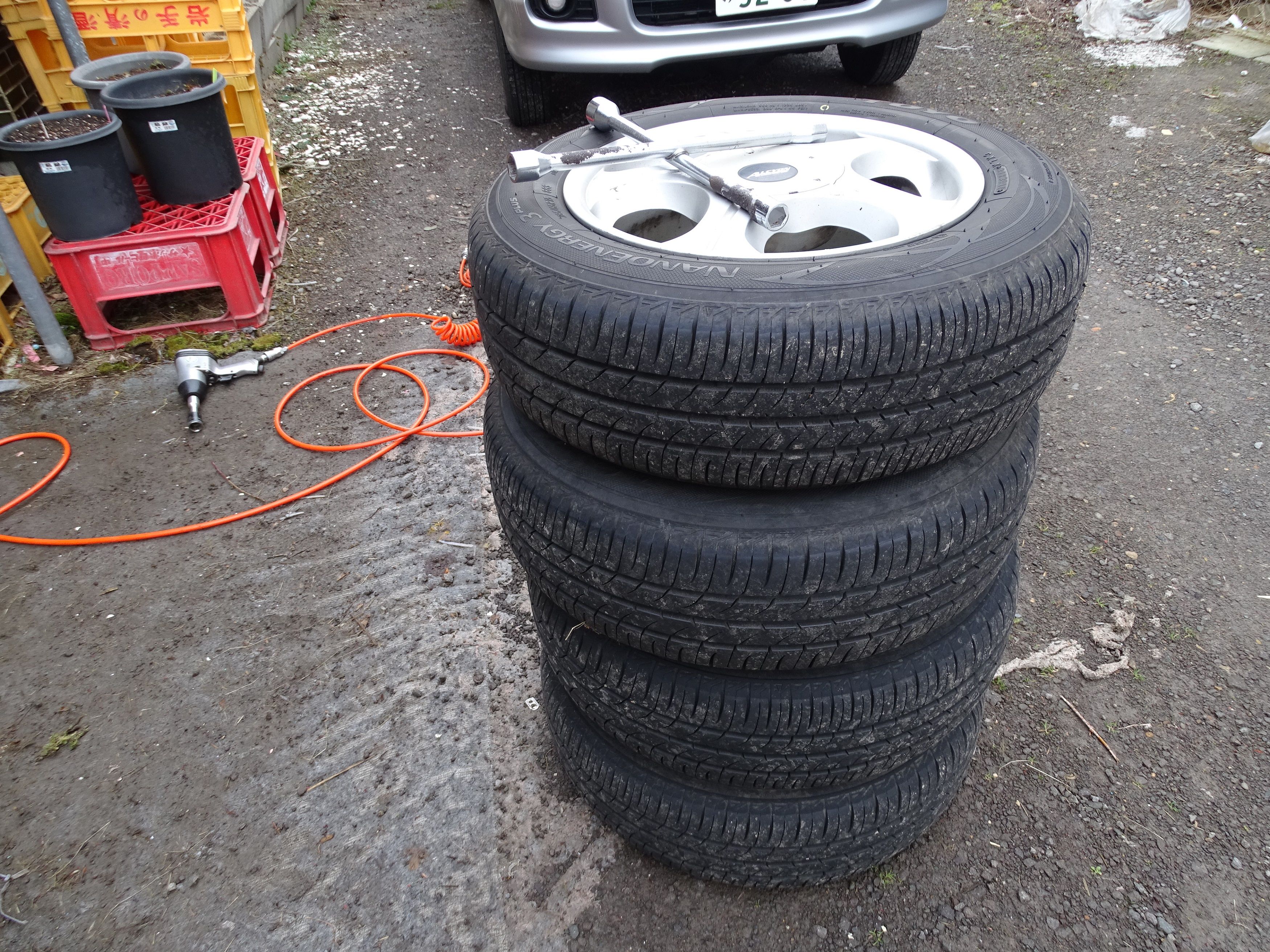 終了今日はいい天気になるとの事なので・・・タイヤ交換を 06:30から作業開始・・・・・・ という事で・・・07:30には作業終了・・・・・・ これで走行も静かになるし・・走りやすくなる・・・・・ 後は・・・もし雪が降っても直ぐに消えるだろうから・・・・・ これでようやく私自身も春モードに戸津に裕しましたぁぁぁぁぁぁぁ (^_-)-☆