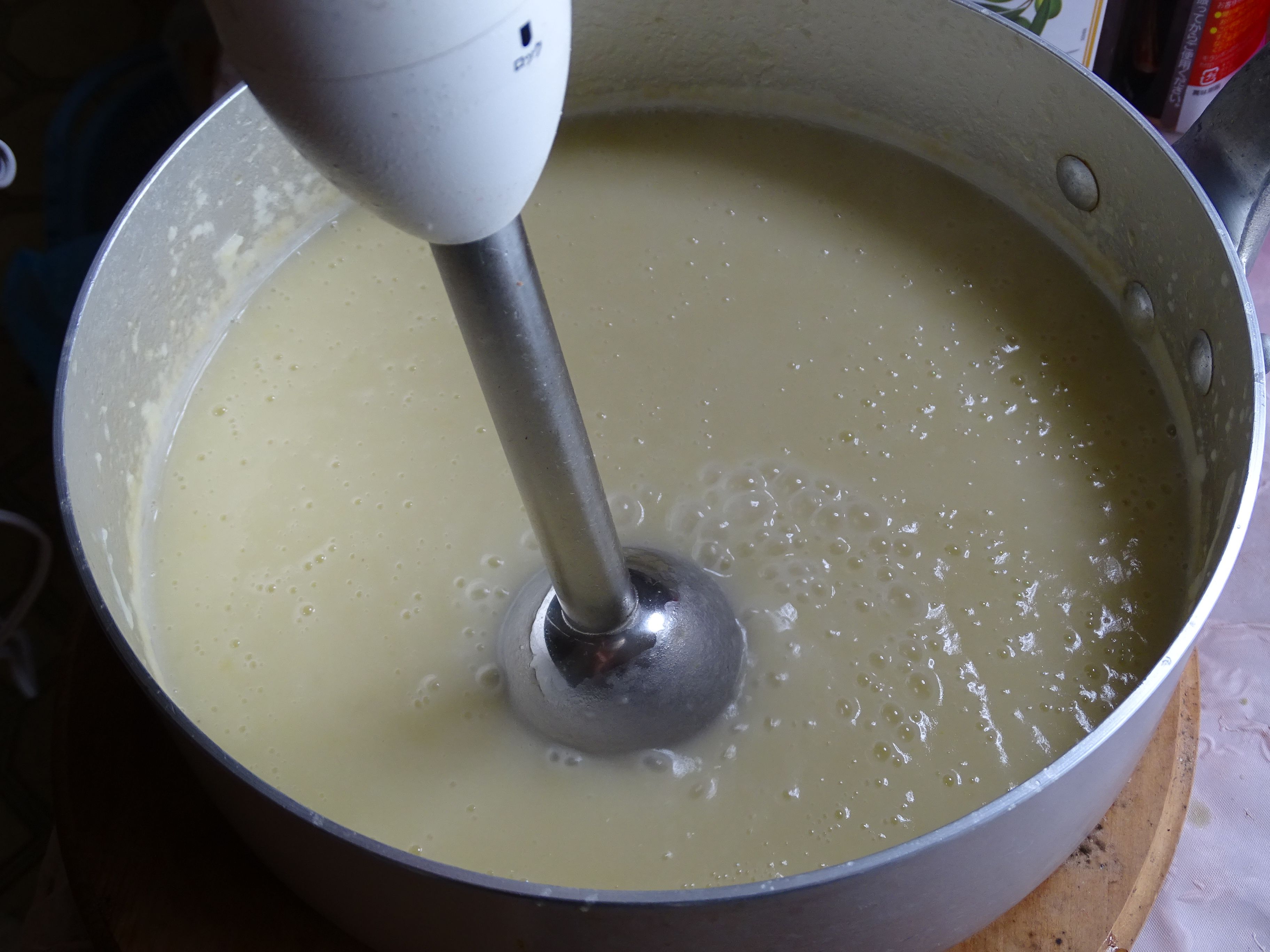スープはできた・・・さっきポタージュはできたんだけど じゃが芋のポタージュ・・クルトンも入れてみました でも・・食事はなんにしよ・・・・・ わからない・・・・・・ダメだったら・・・・・パスタ・・・・かな