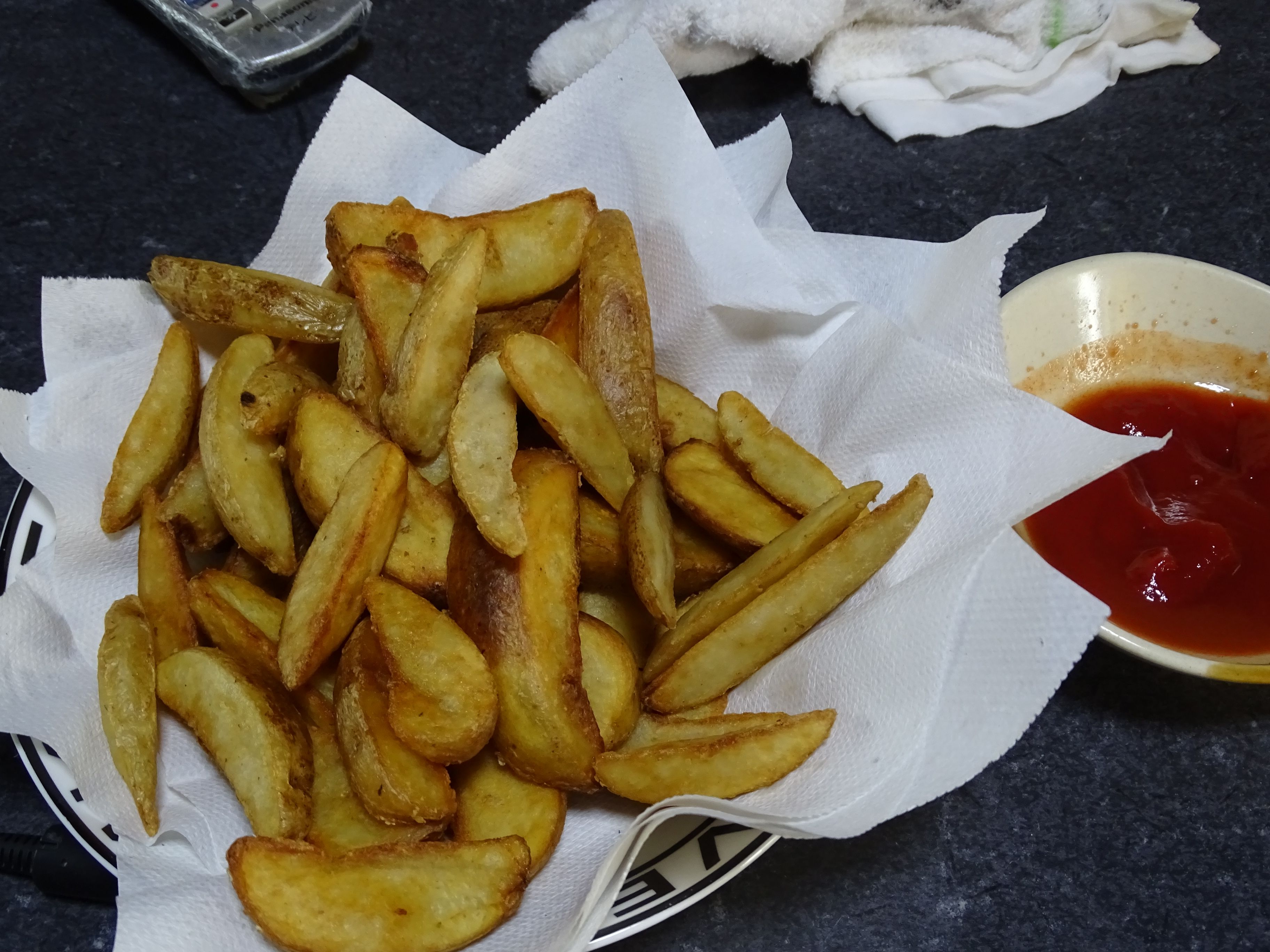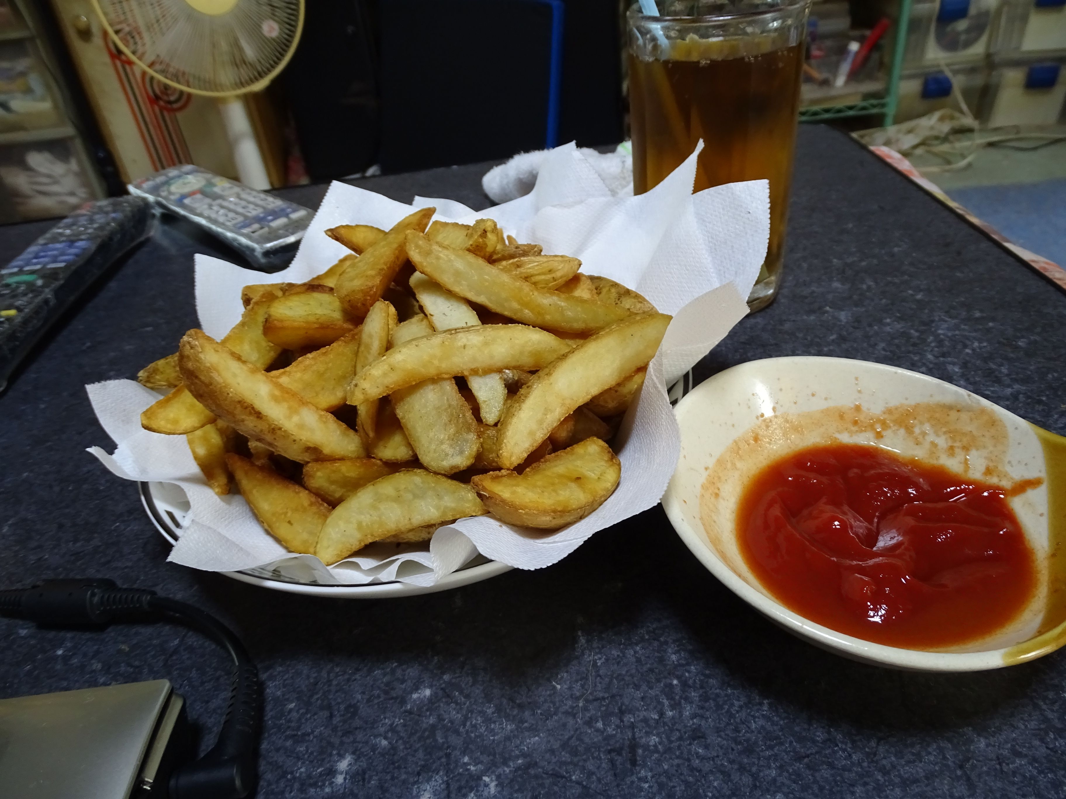 オヤツの時間時間的になんかつまみたい・・・となったので 久しぶりに・・・フライドポテト・・・ 赤いのは・・・ケチャップにタバスコを入れて・・・・ ・・・・・これでビールが飲めたら最高なんだけどね~~~~