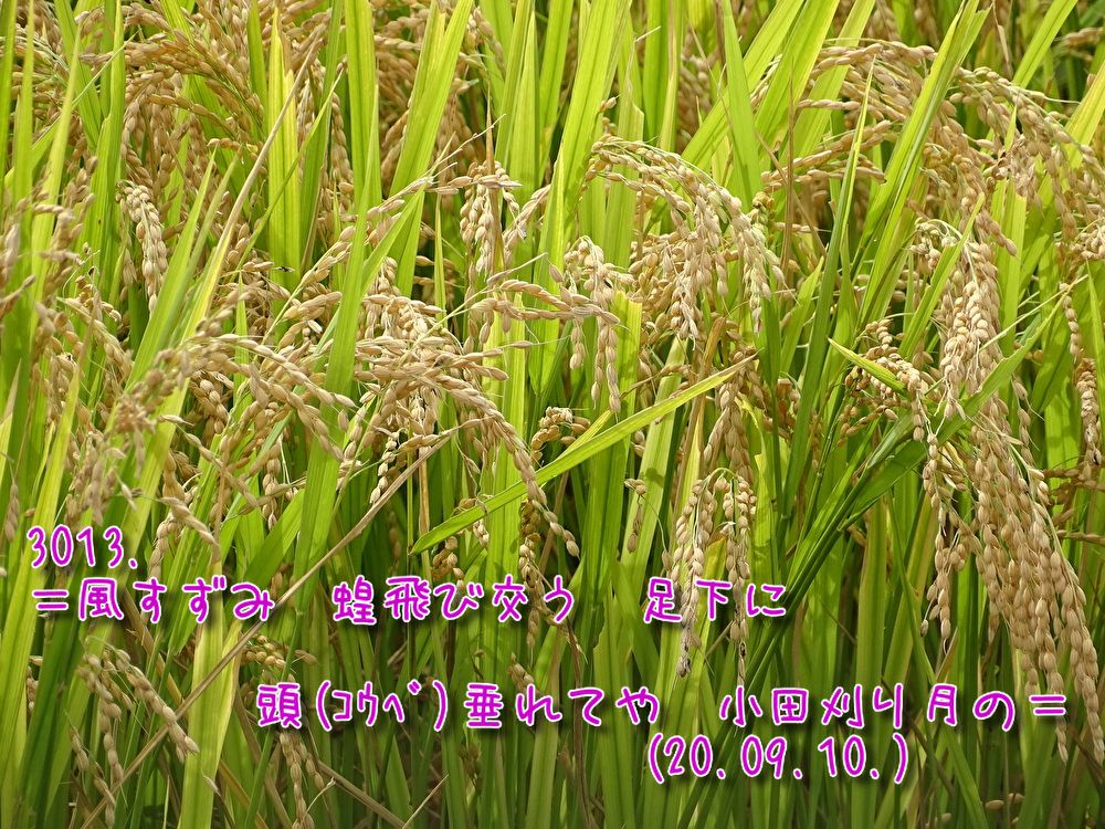 長月に・・なんか・・あっ・・という間に稲を刈る季節に・・・・ 子供の頃は・・足下には蝗・・・空には蜻蛉・・・空が見えなくなるほどに・・・・・ でも今では農薬の影響で蜻蛉なんかほんのわずかとんでるだけ・・・・・ それでも小田刈り月にはなる・・・・・ どんなに異常な年でも・・・ちゃんと風の涼む時はくるんだね・・・・・