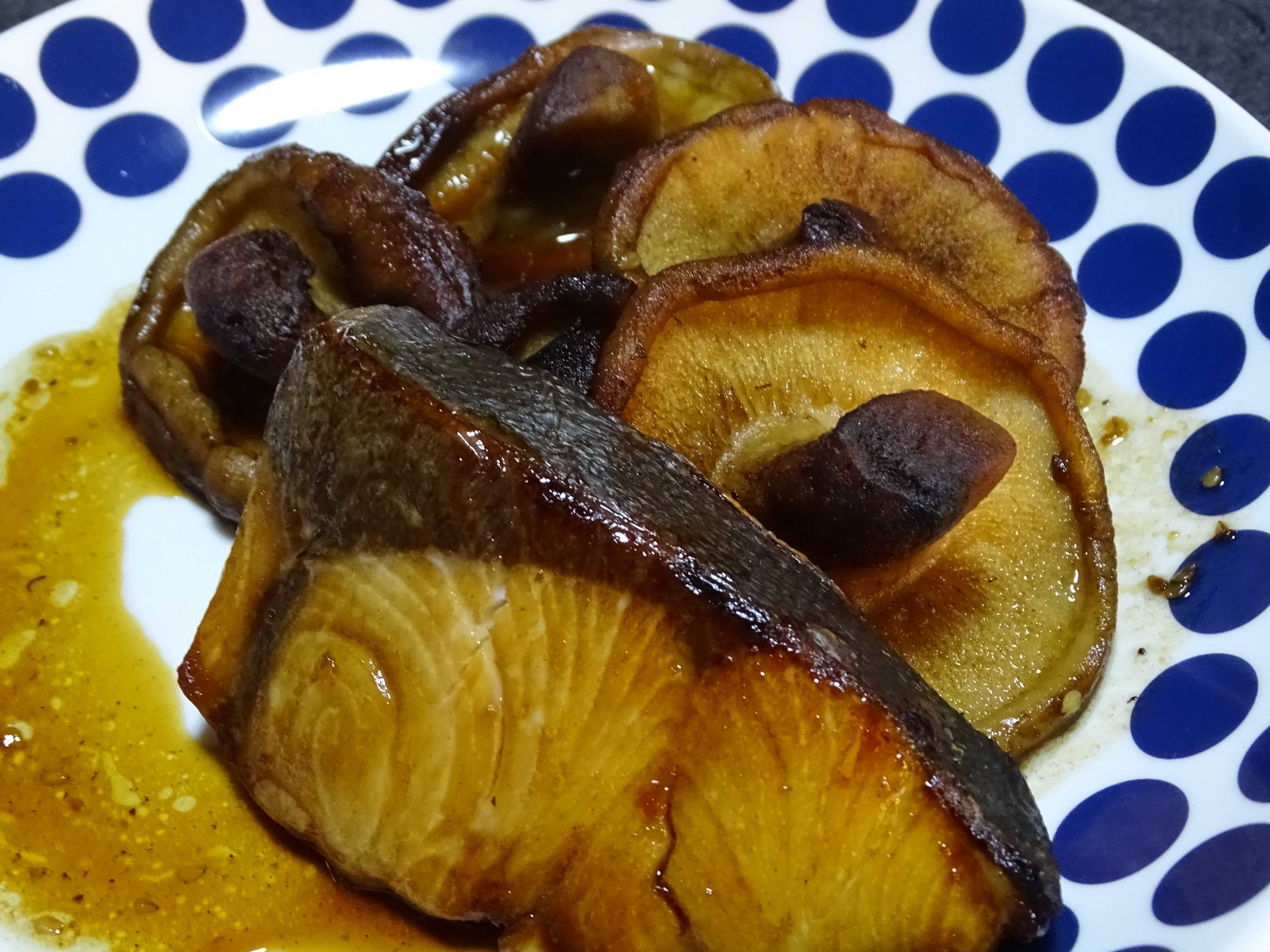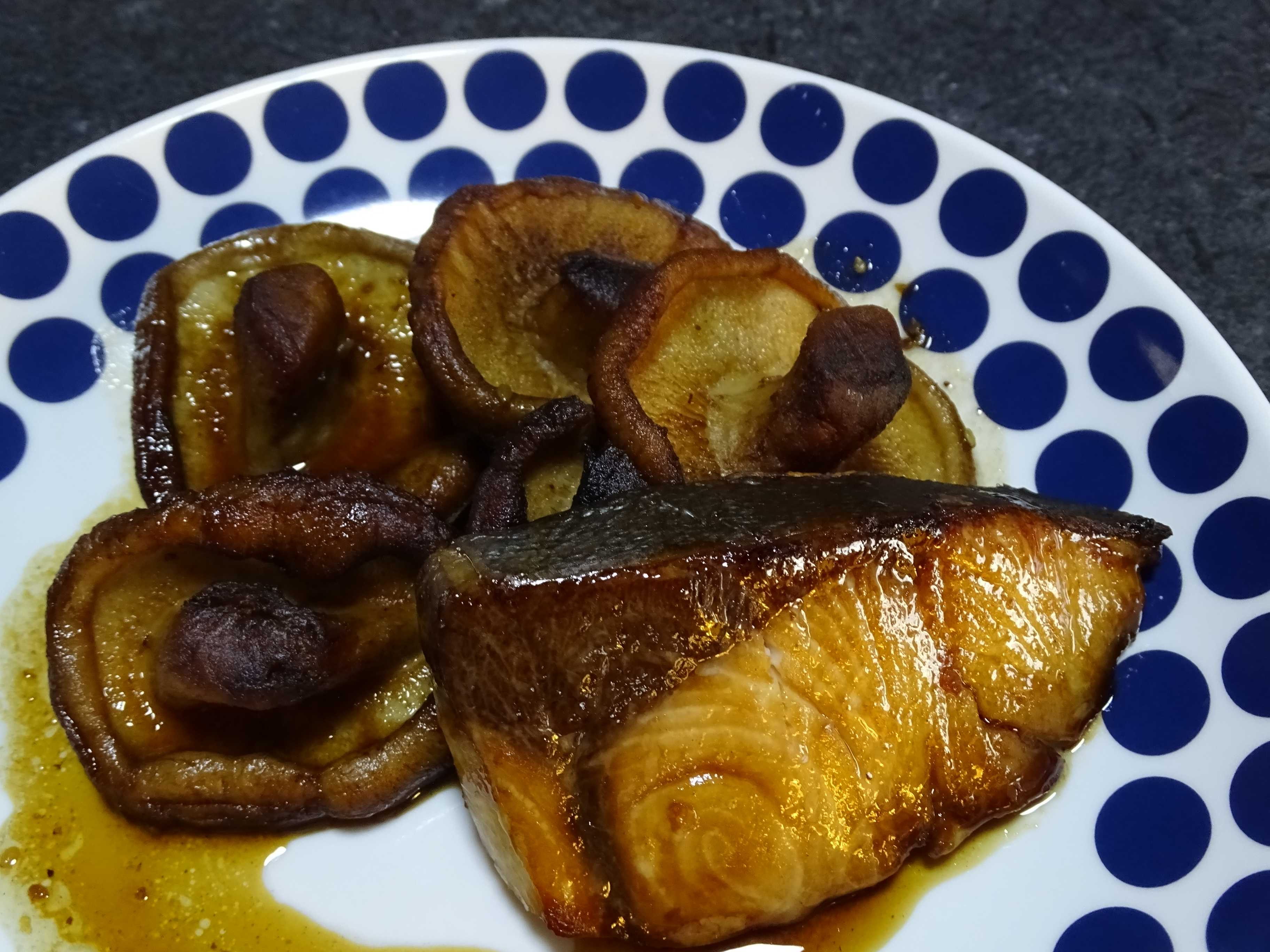 今日のは・・・デッッッカイ椎茸と魬の照り焼き