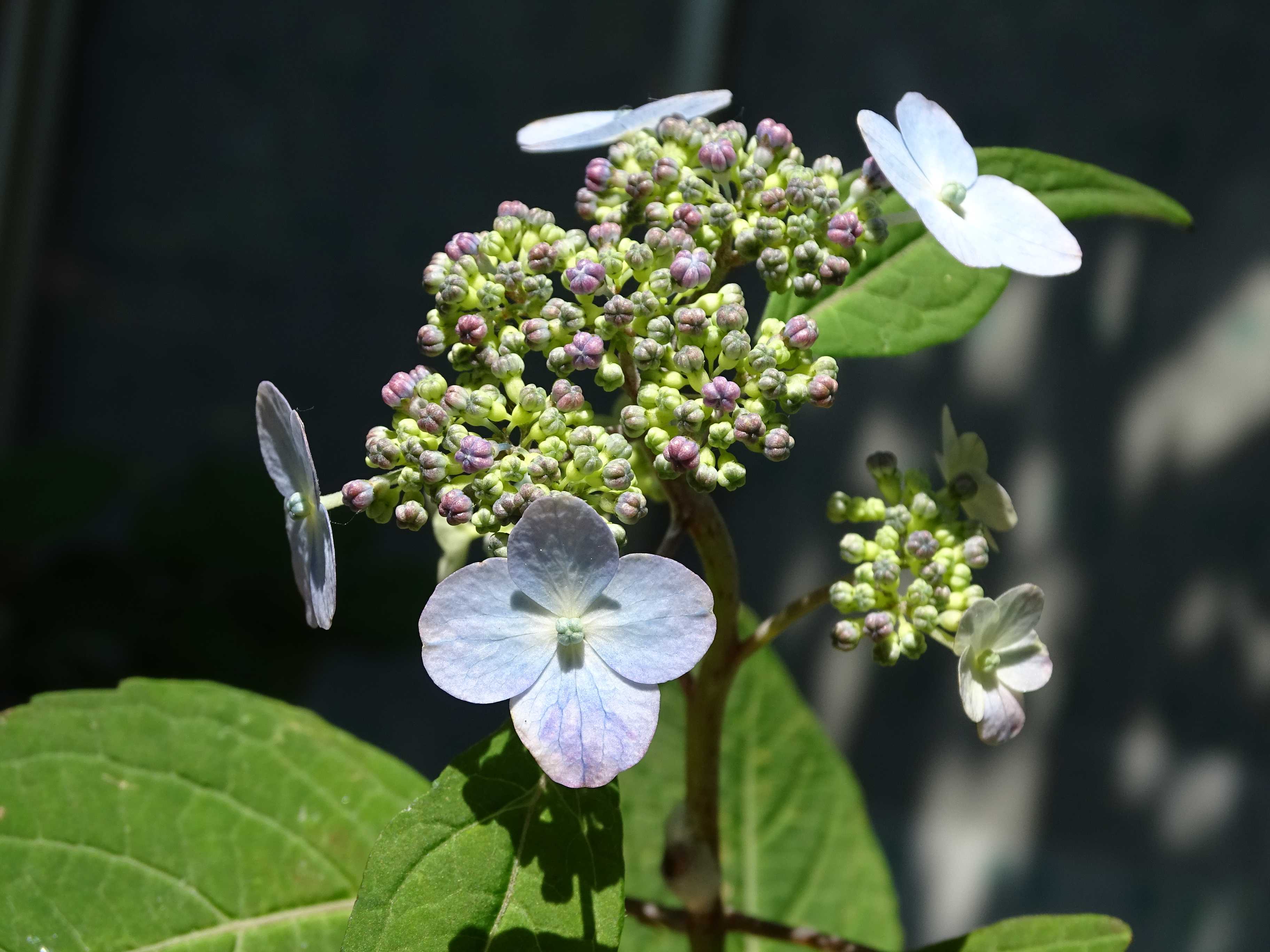 これは地植えの甘茶なんで・・・・八重咲きの甘茶は鉢植えで開き始めてます