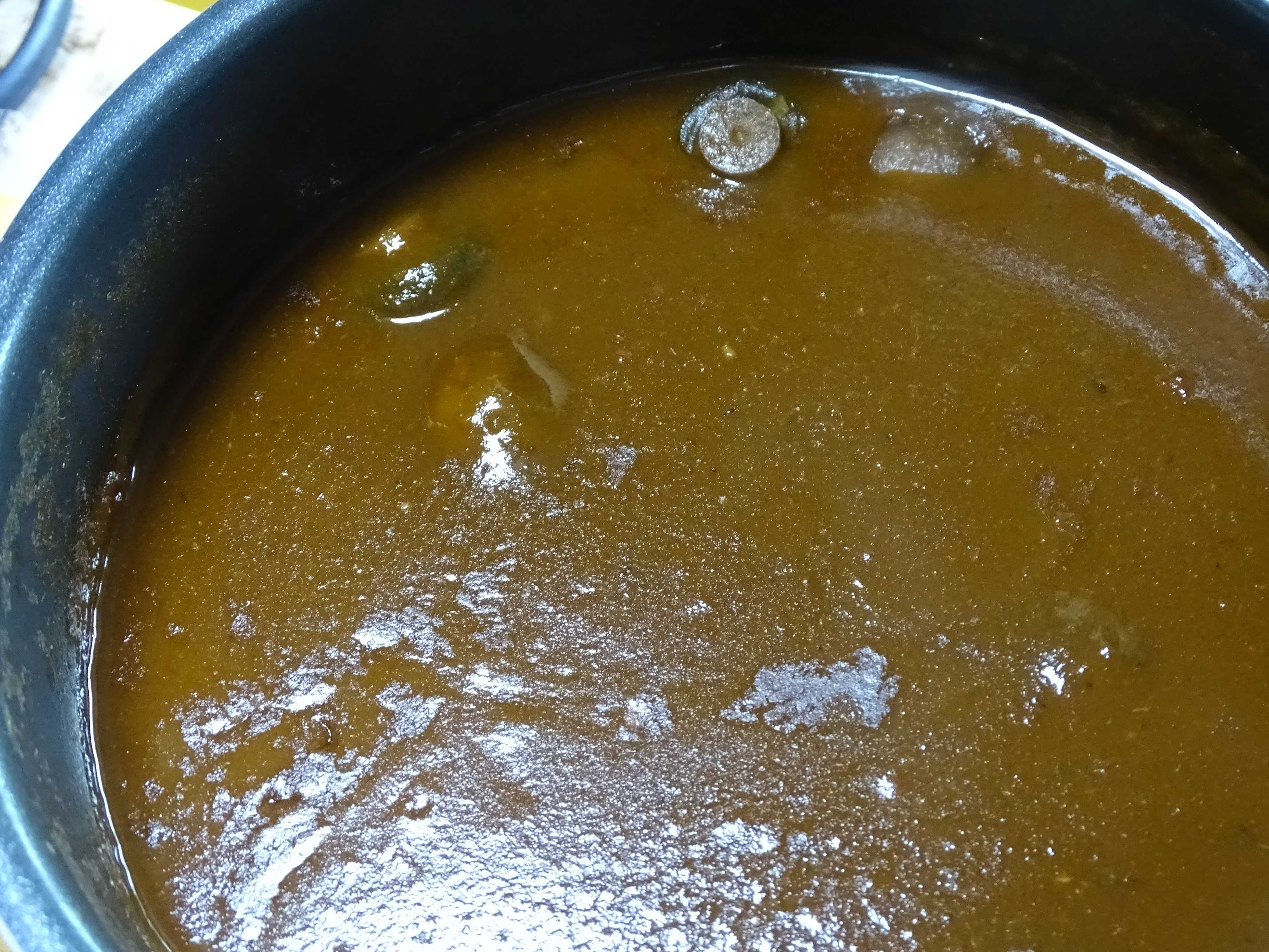 終わってから野菜を取り出してブレンダーで・・不必要な野菜カスをザルで漉して