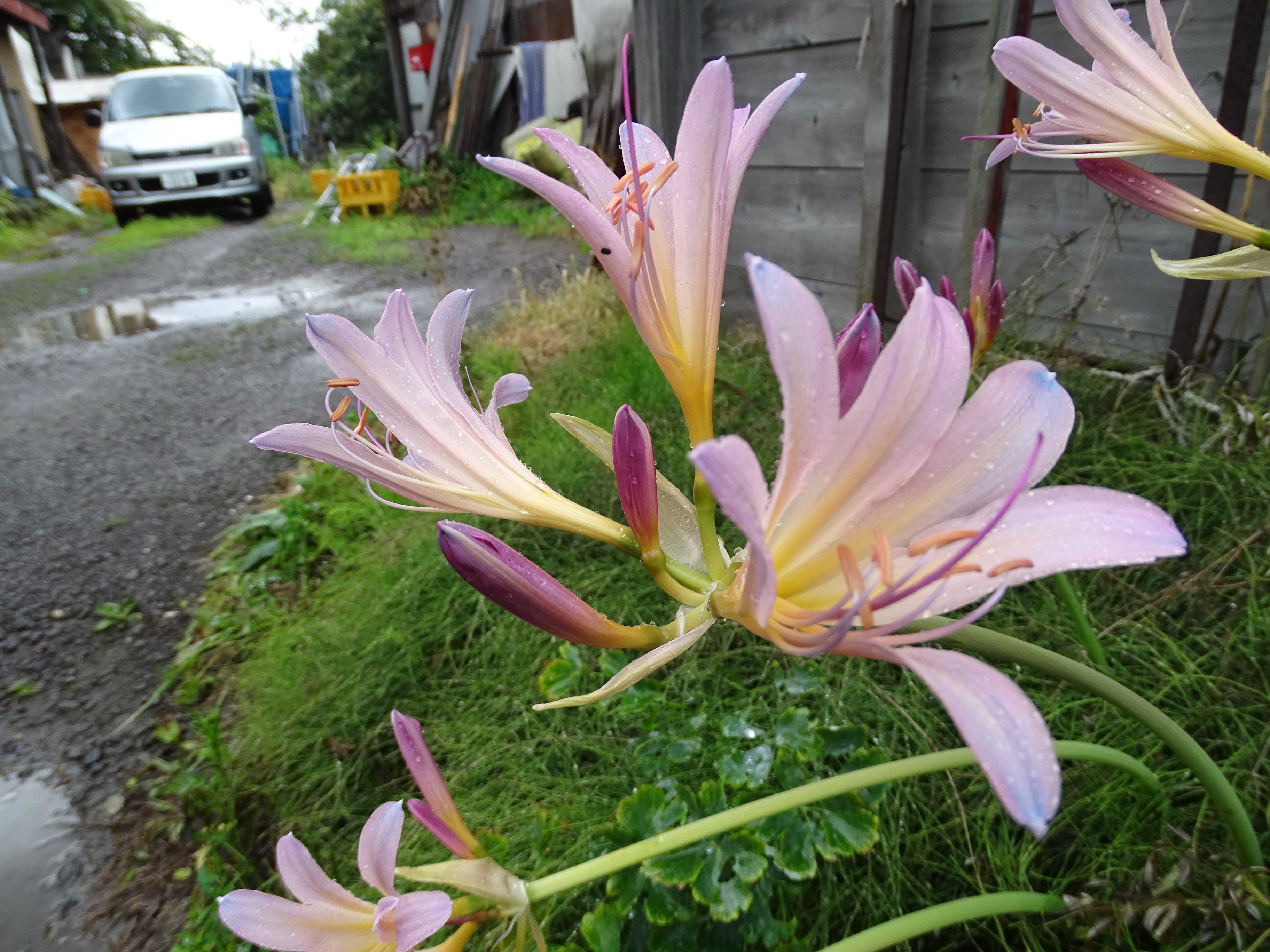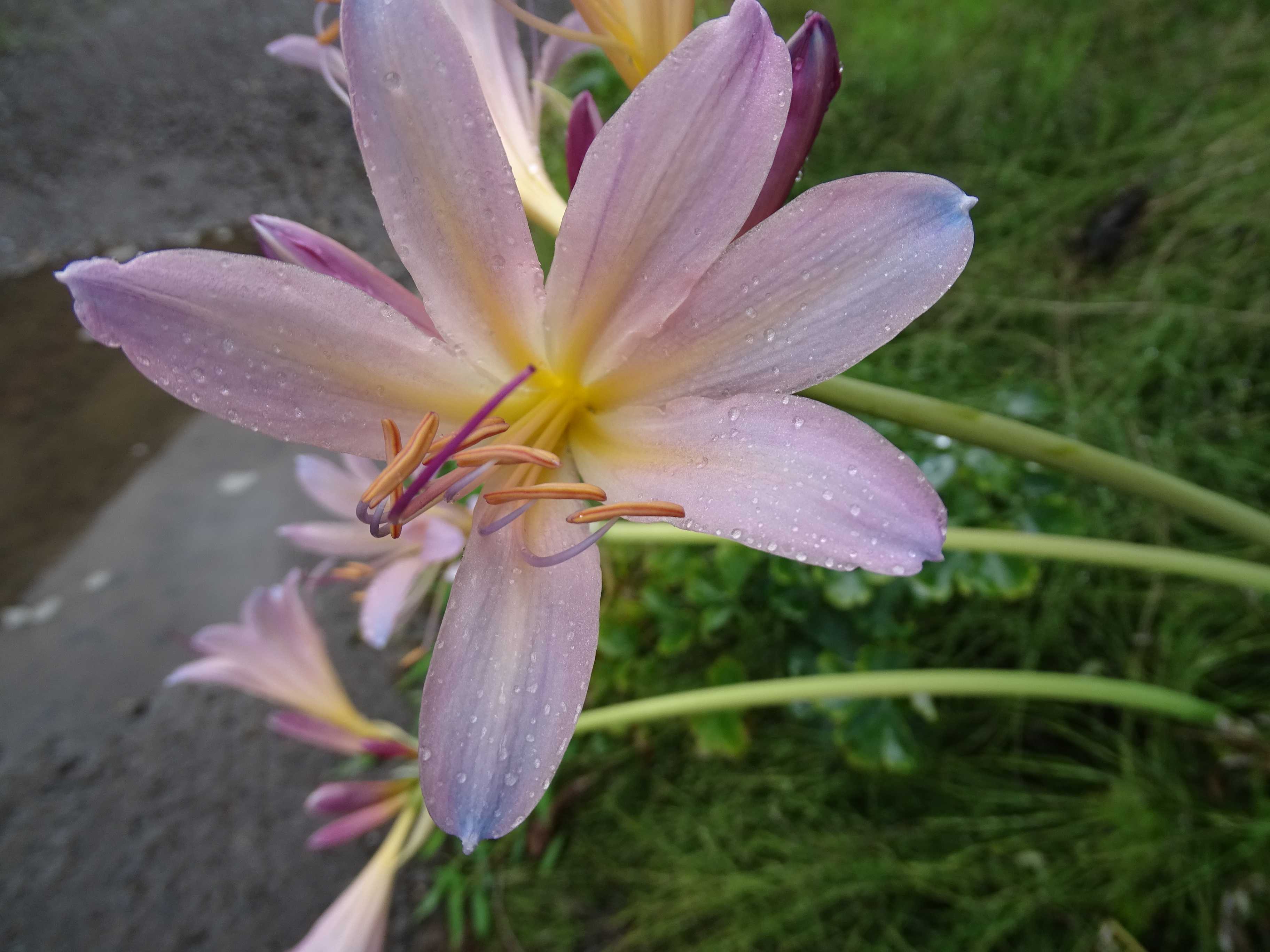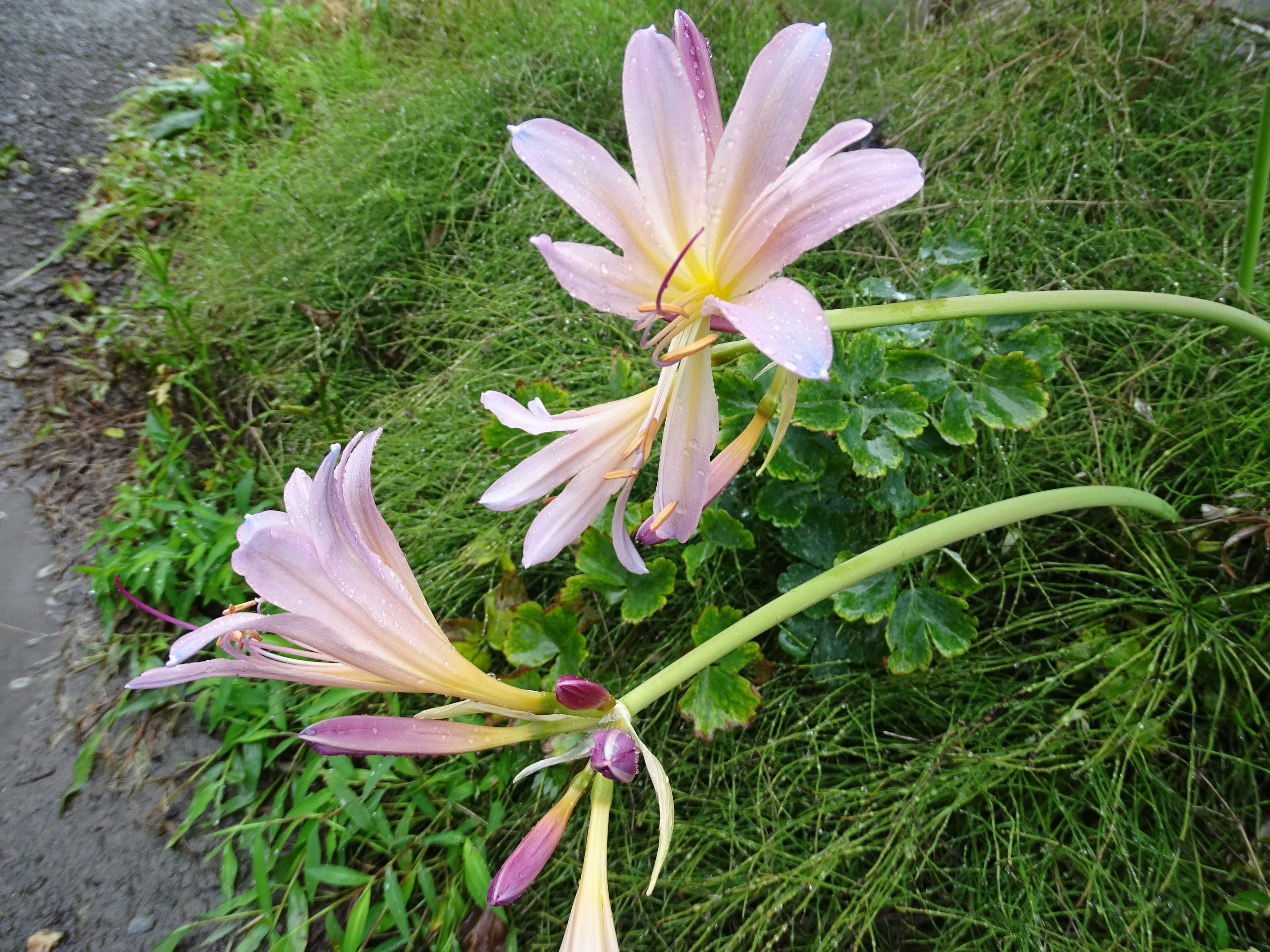 庭のナツズイセン・・昨夜の雨が強かったみたいでみんな横になっちゃって