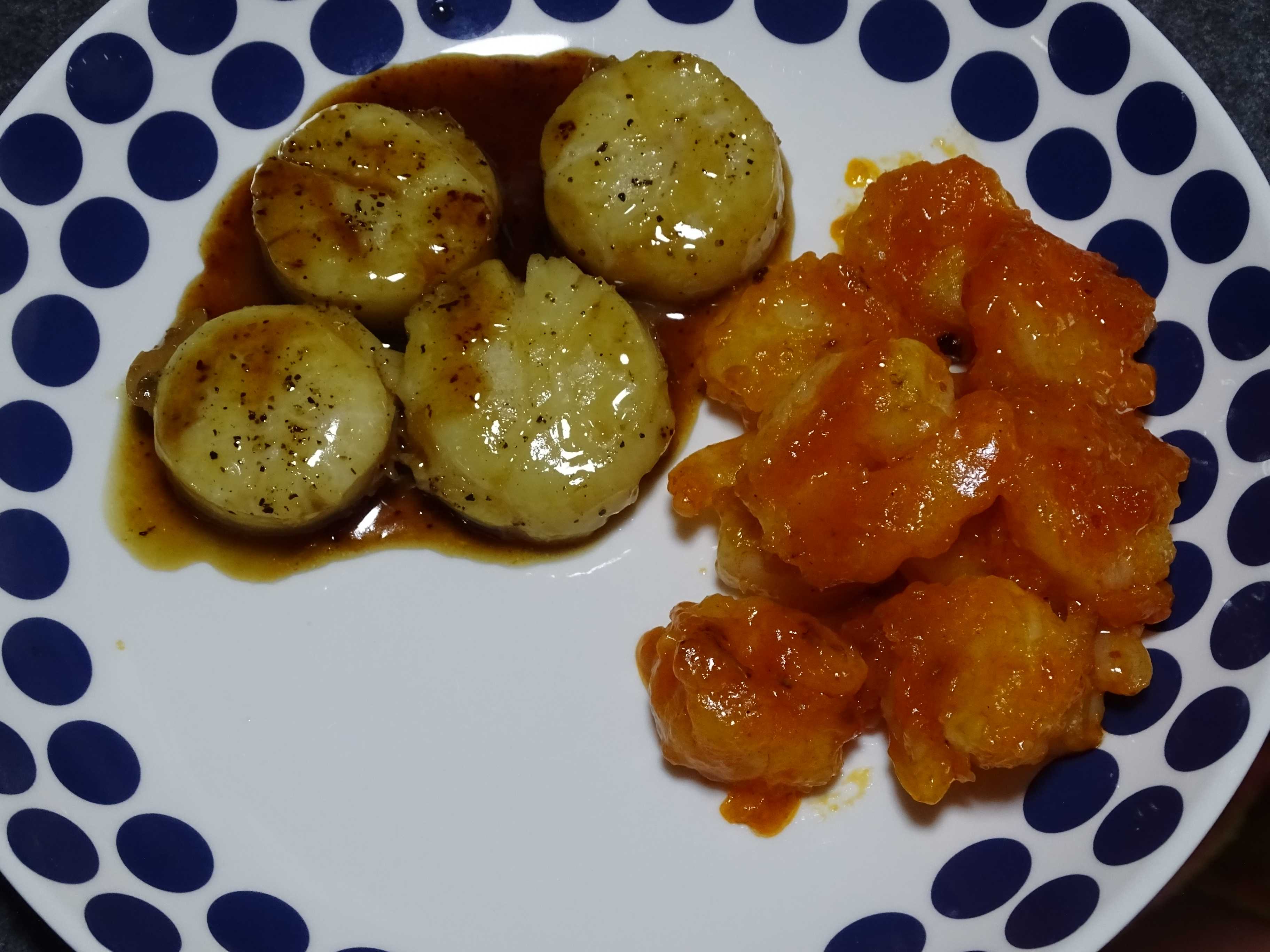 メインは・・ホタテのバター醤油・・・エビチリ・・・・