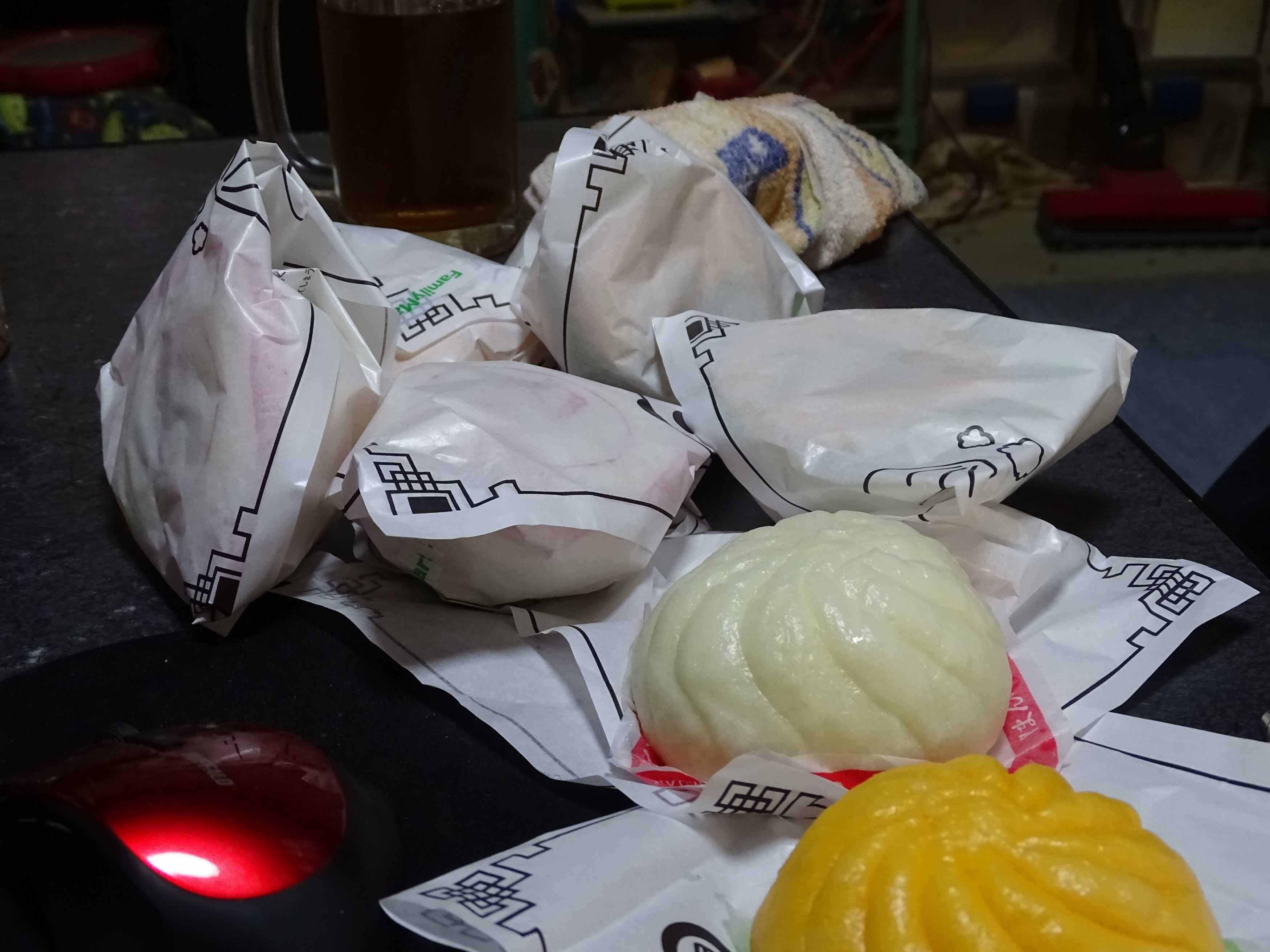 という事でコンビニへ・・・・・肉まんとピザまんを買って来た