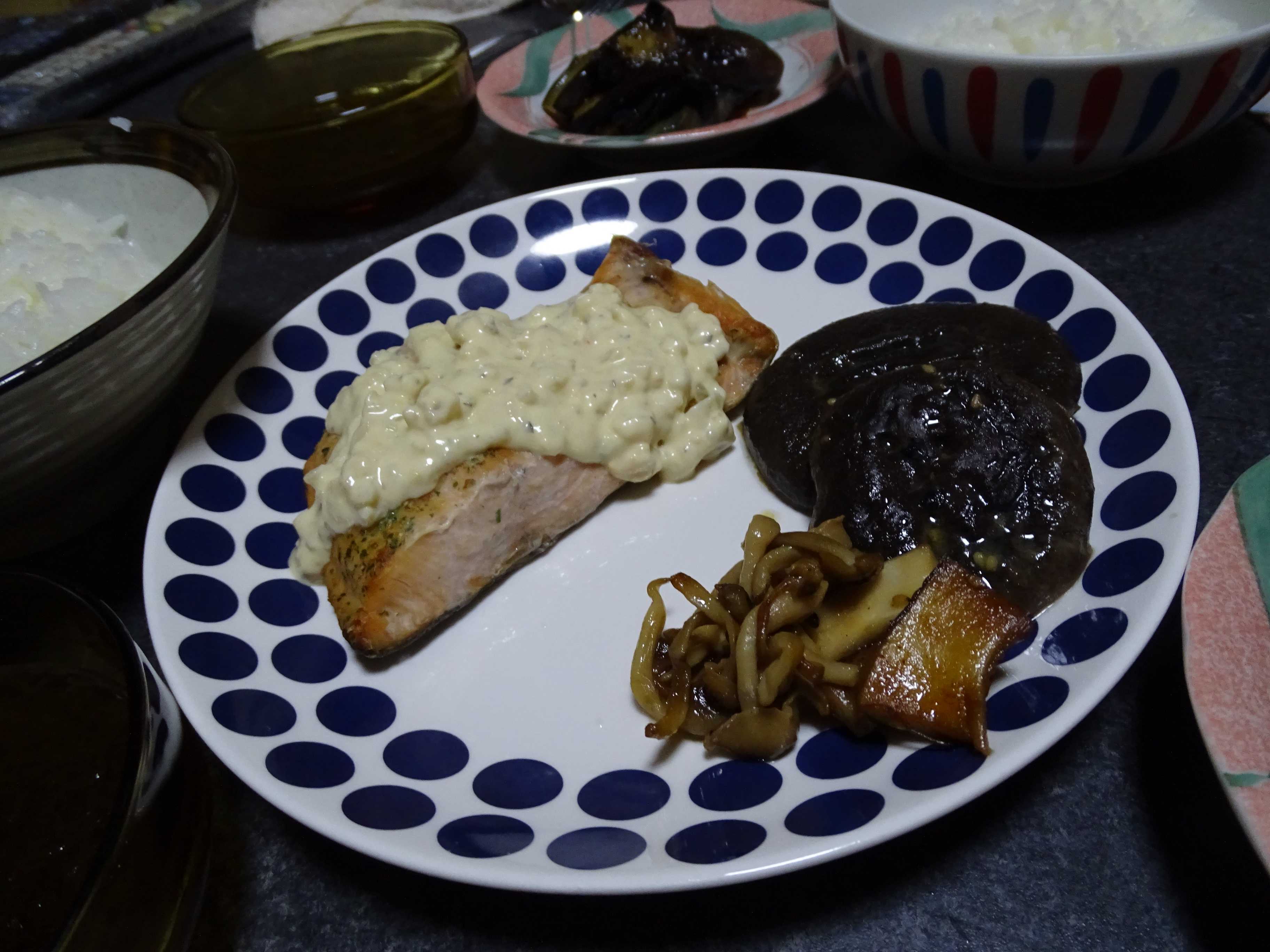 夕飯は・・今日は予定通りの夕飯に・・・・ 鮭は・・タルタルソースで・・・椎茸はバター焼きにしました 茄子は生姜風味に・・・・・ そして・・・モズクは三杯酢で・・・・ いやあぁぁぁぁぁ・・・何時もの事だけど・・・お腹パンパン・・・・ 竜胆を観に出たら・・・鉢にイナゴが・・・・寒そうに もう大半は眠りについただろうに・・・・・ そんな所で・・・明日迄頑張れるのかな・・・・