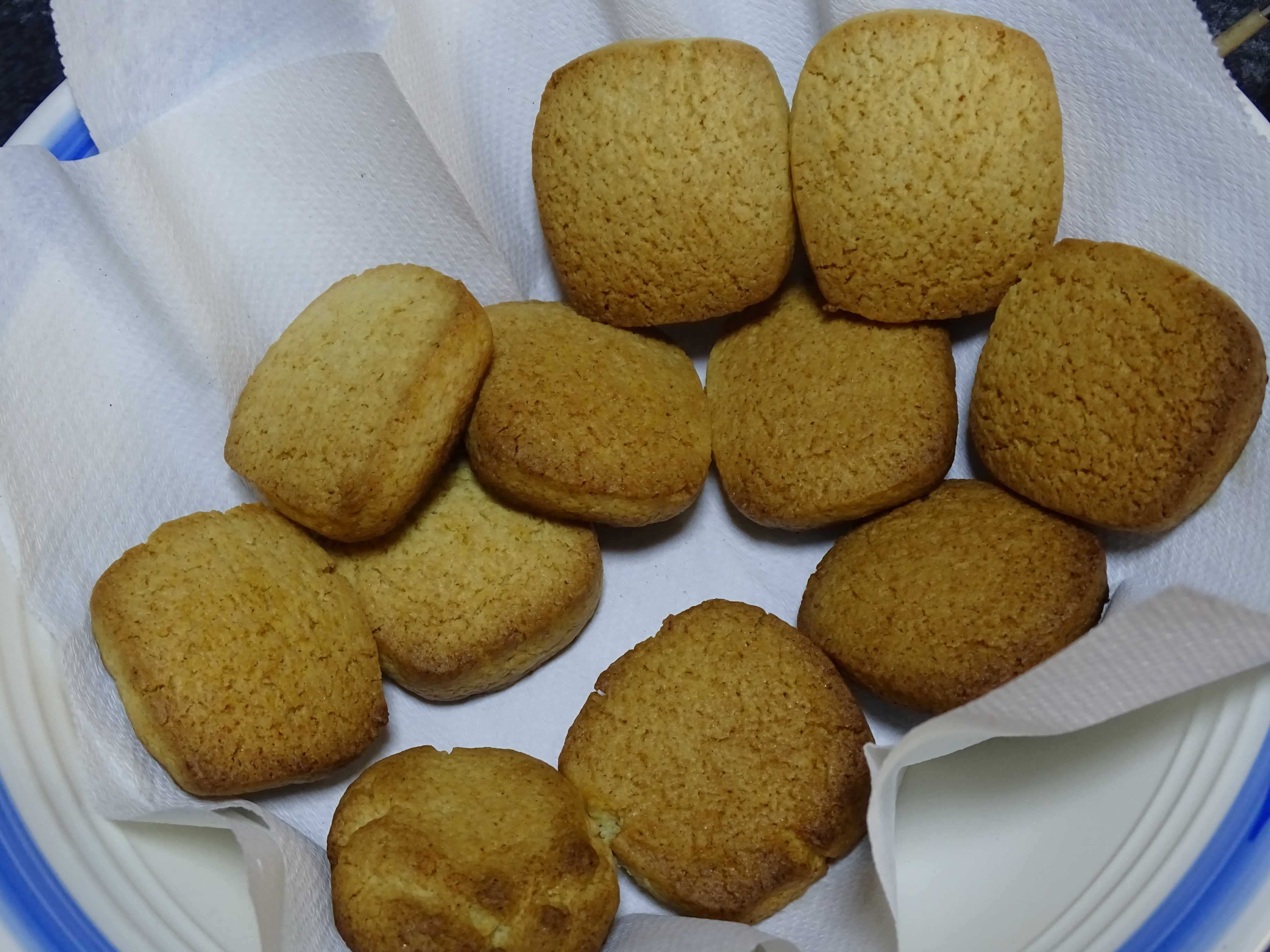 暇だったから・・ようやく雨はあがったようだけど・・・庭はまだビッチョビチョ 明日からはなんとなく回復するみたいだから・・・ タイヤ交換は・・・明日以降かな・・・・で・・・する事がなかったから 今日は簡単なものでも焼きますかな・・・・ 焼きたてはちょっと・・・・ですね・・・ 5分ほど時間をおくとサクサク・・・息子も喜んで食べてくれてます (^_-)-☆