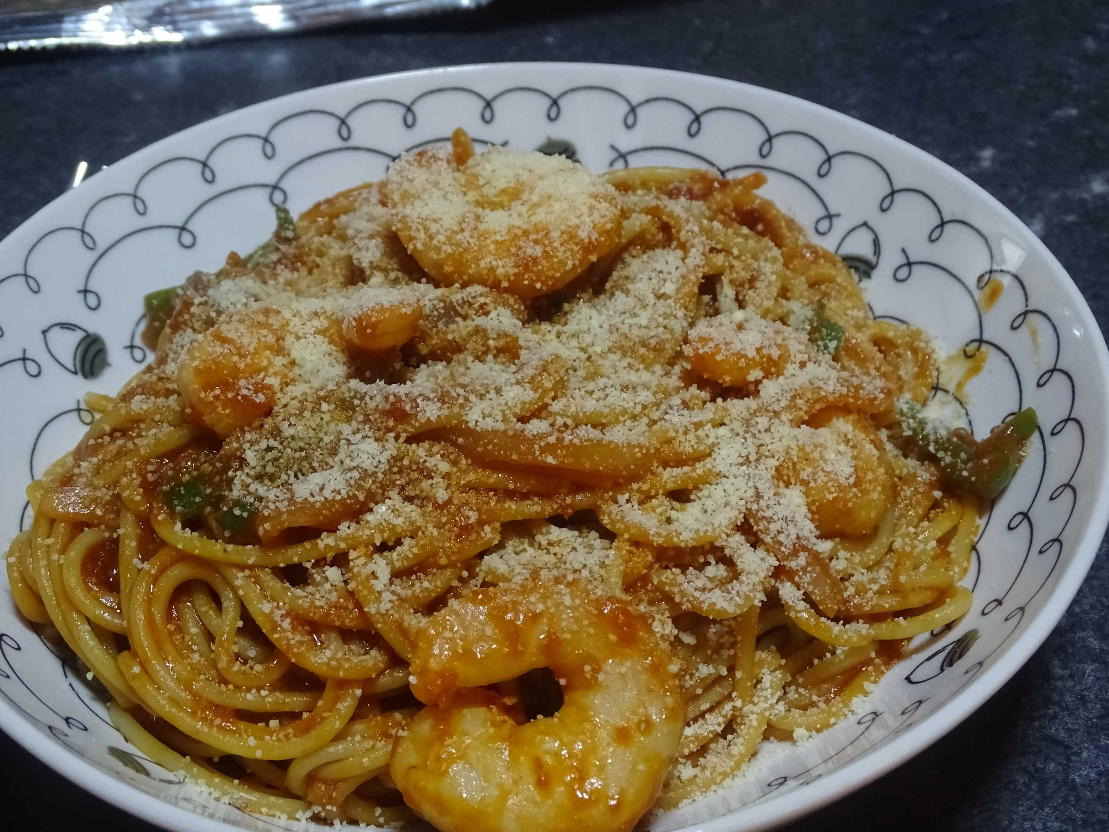 あまりかけすぎたのか・・ほぼチーズの味か強かった・・エビはプリップリで美味しかったけど