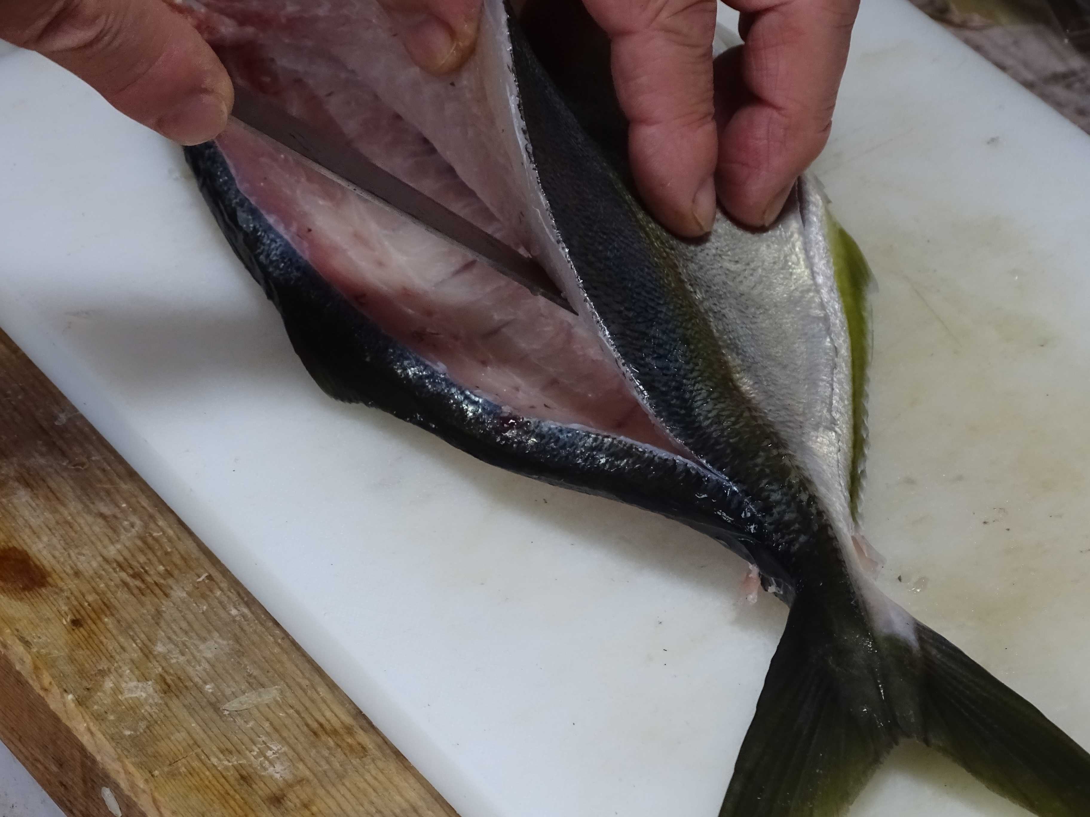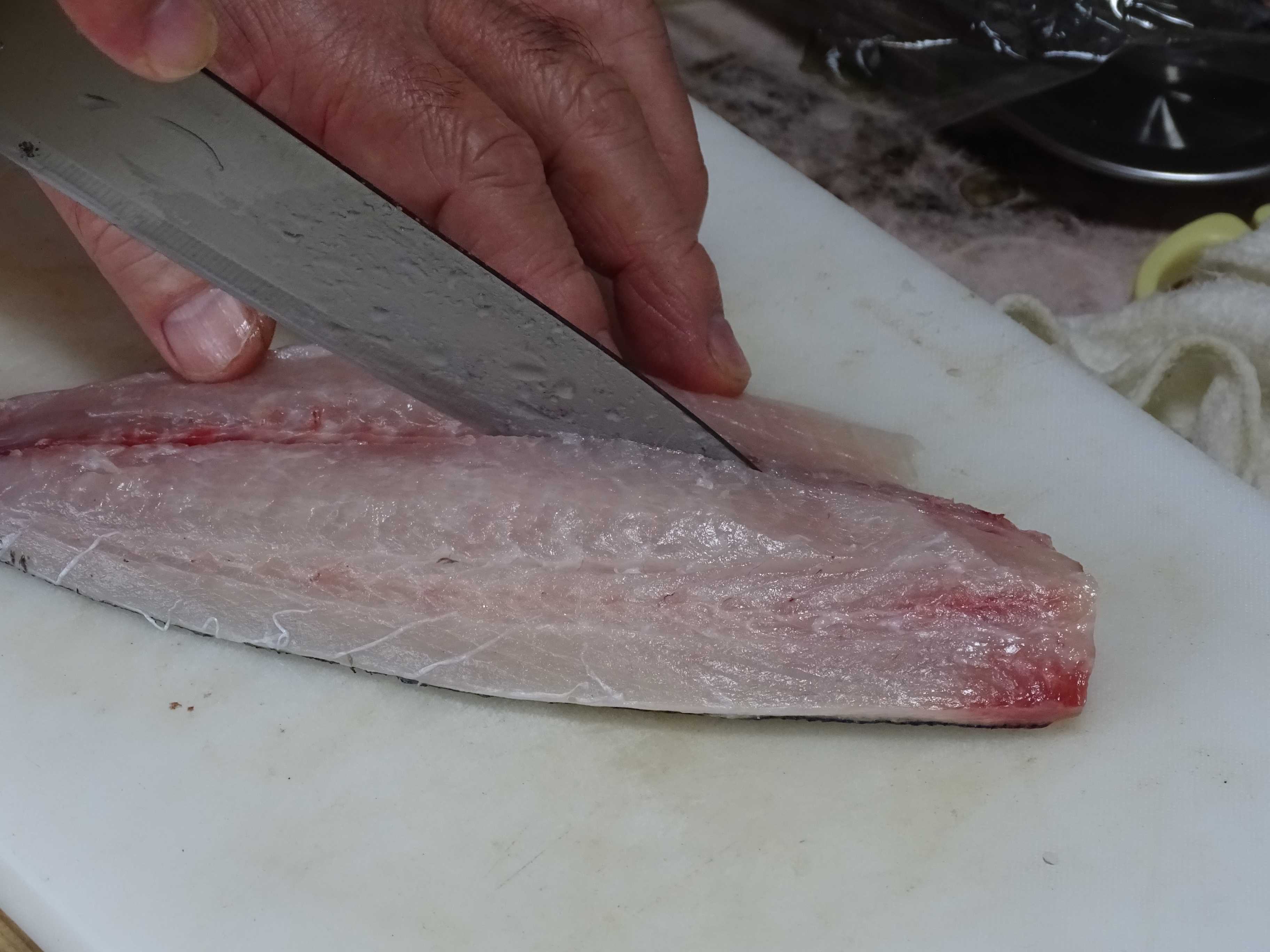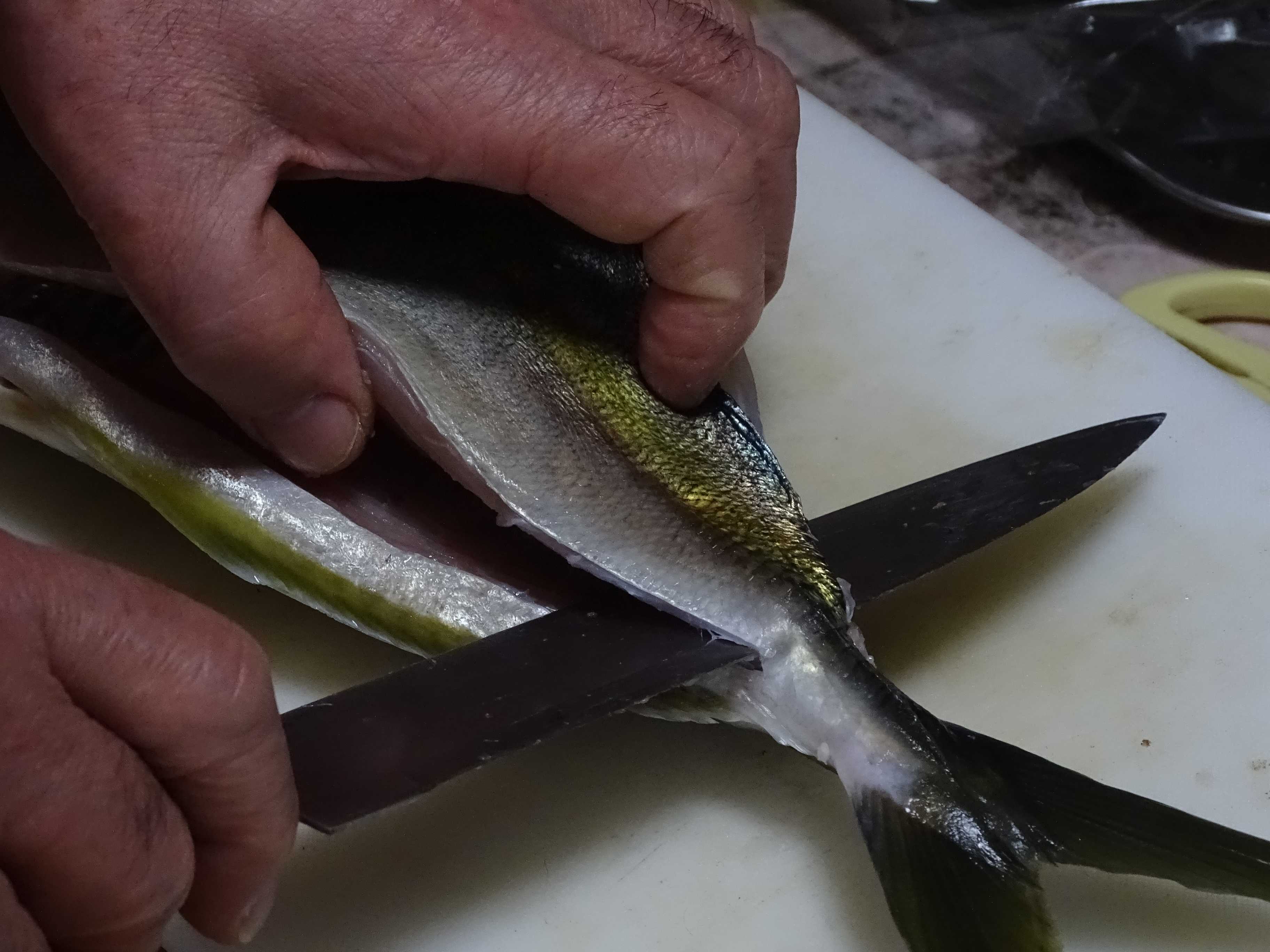 縞鯵は昨日のうちに頭と内臓の処理をしておいたので・・・・