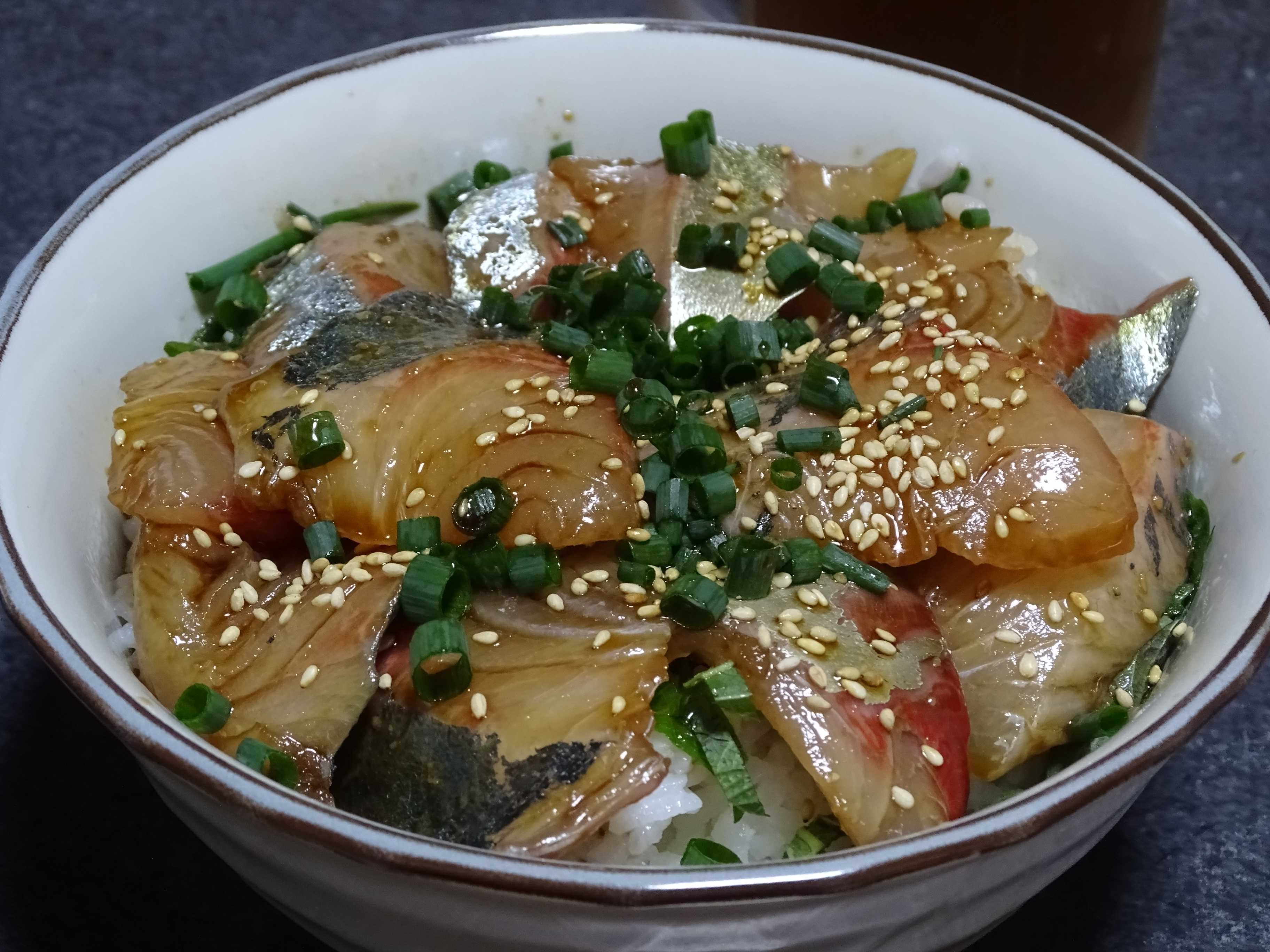 お昼は・・・午前中に仕込んどいた・縞鯵・の漬け丼