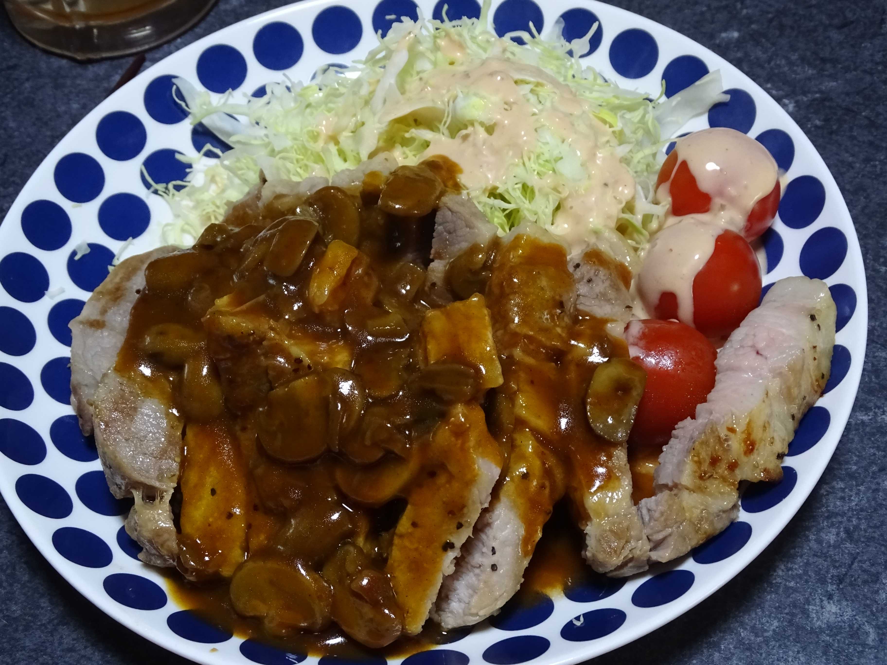 今日の夕飯は昨日買っておいた豚ロース・・1人370gのポークソテー
