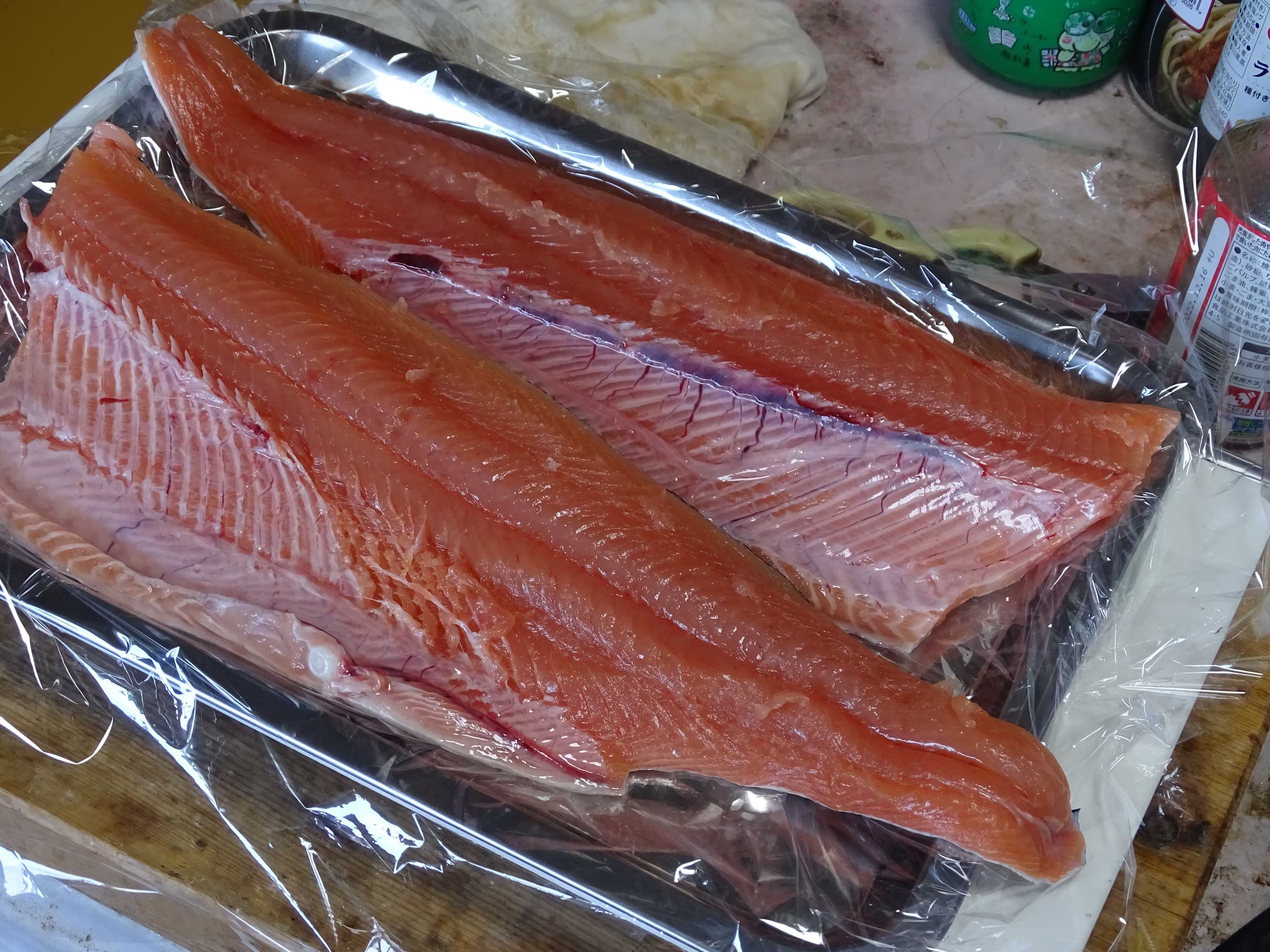 1本・・今日の昼&夜のは決まってるけど・・息子からスニーカ(チョコレート)の注文があったので イトクでは置いてないのでユニバースまで・・・・ ここまで来たから・・という事でカブへも・・・・そこで見つけたのが・・生の鱒・・ 帰宅してから早速さばかないと・・・・ ん~~~~~なんにしようかな~~~ とりあえず・・アラには塩をしておいたから・・・・ 後は・・・・・・明日までに考えとくかぁぁぁぁ