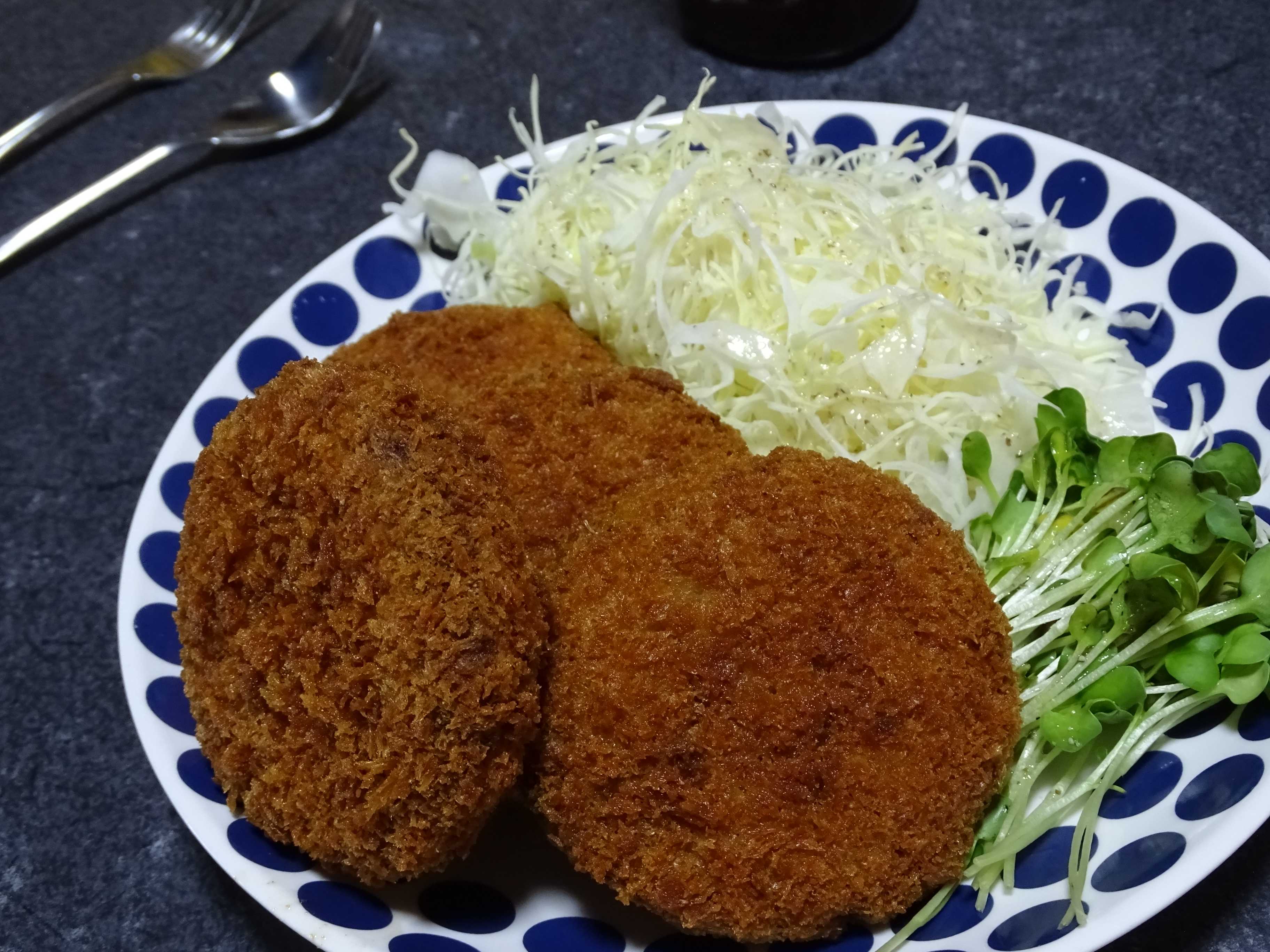 今日の夕飯は・・先日業務スーパーでみつけた・メンチカツ・