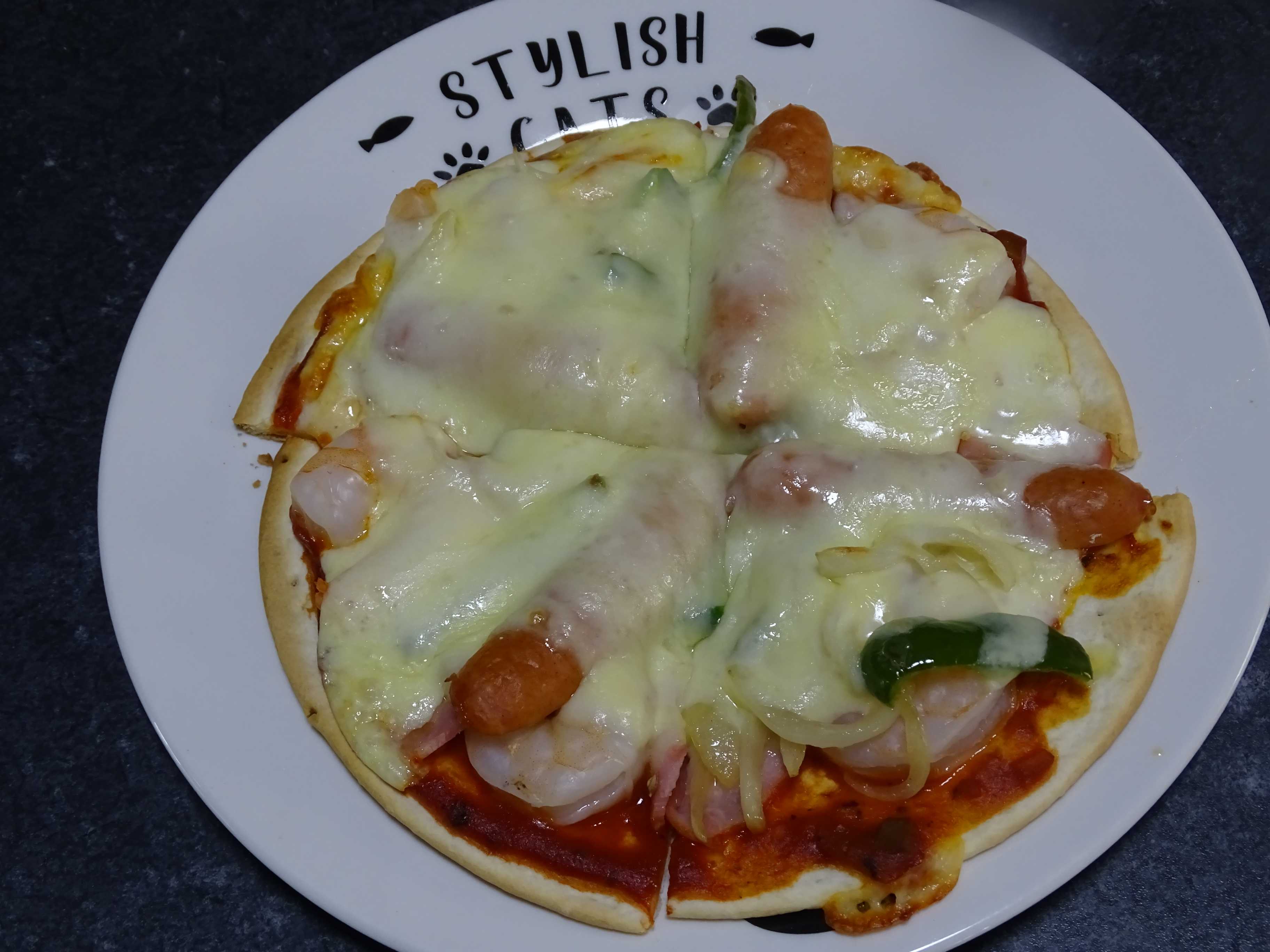 ピザクラストを買ってきました・・・ついでに・・チョリソーとサラミとエビも・・・・・・