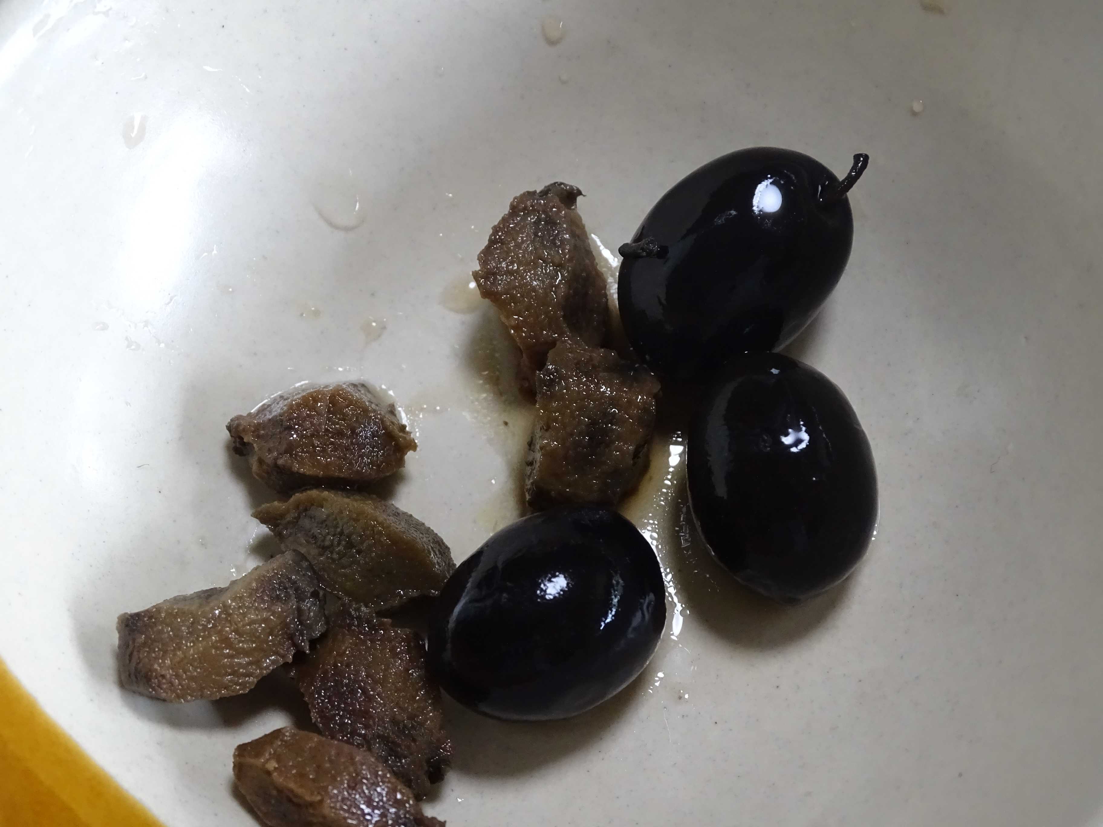 ブラックオリーブ・ミニトマト・オイルサーディン・オリーブオイル・バジル・パン粉・塩・・・・
