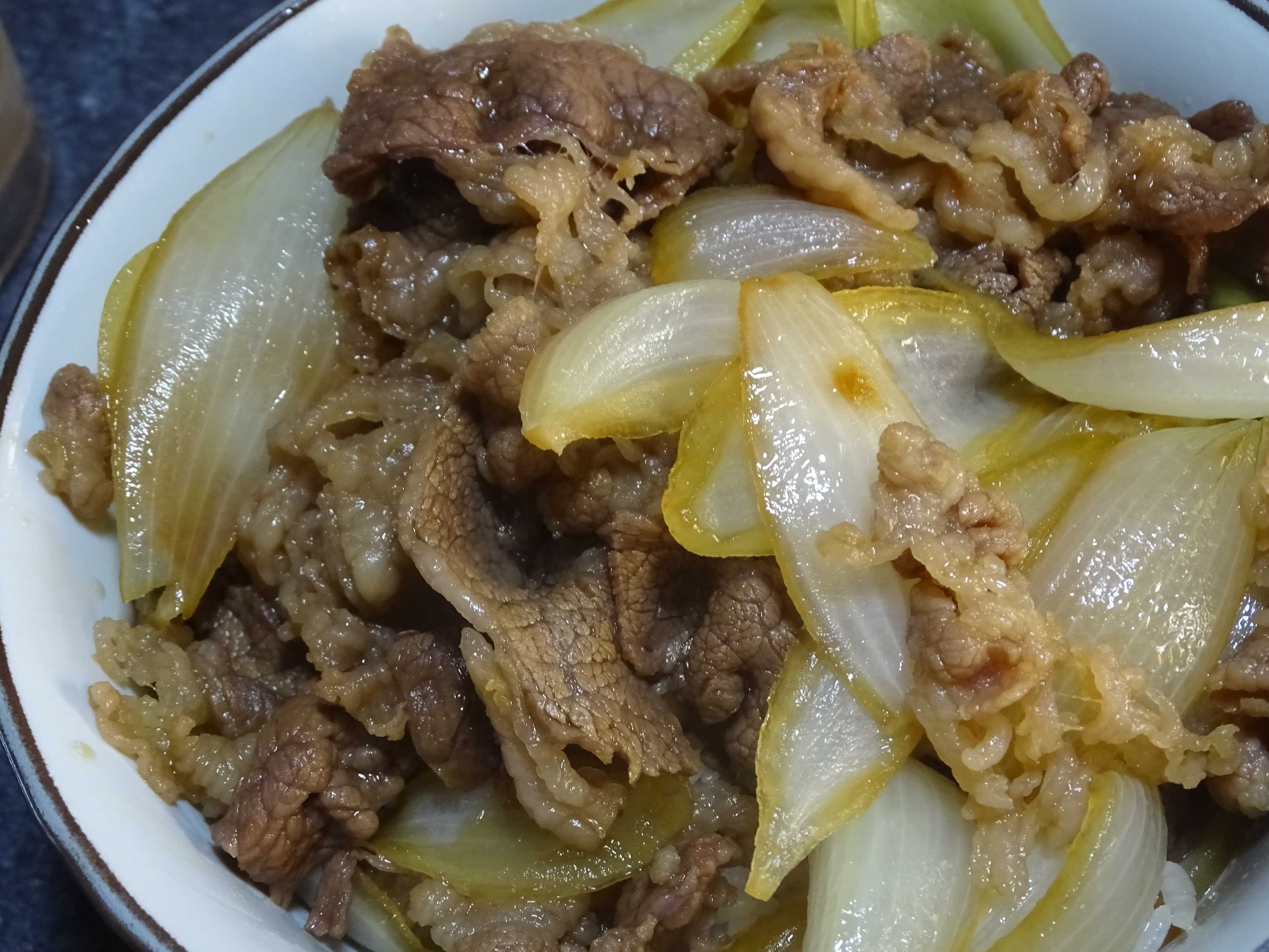 夕飯は・・今日は暑かったぁぁぁぁ・・・なんにもしたくなくて・・一日中ゴロゴロ 時計観たら・・・という事でスーパーへ・・・・ なんにしようか迷ってたら・・牛バラスライスが割引になってたから3パック購入 家に玉葱のストックはあるので・・・という事で今日は牛丼に・・・ ちょっと玉葱の煮込みが浅かったかな・・・今回搾り生姜の入れ忘れはなかったから・・・ 牛丼は息子もかなり量が多くても食べちゃうから・・・ フゥゥゥゥ・・なんか久しぶりの牛丼・・・美味しくいただきました・・・(^_-)-☆