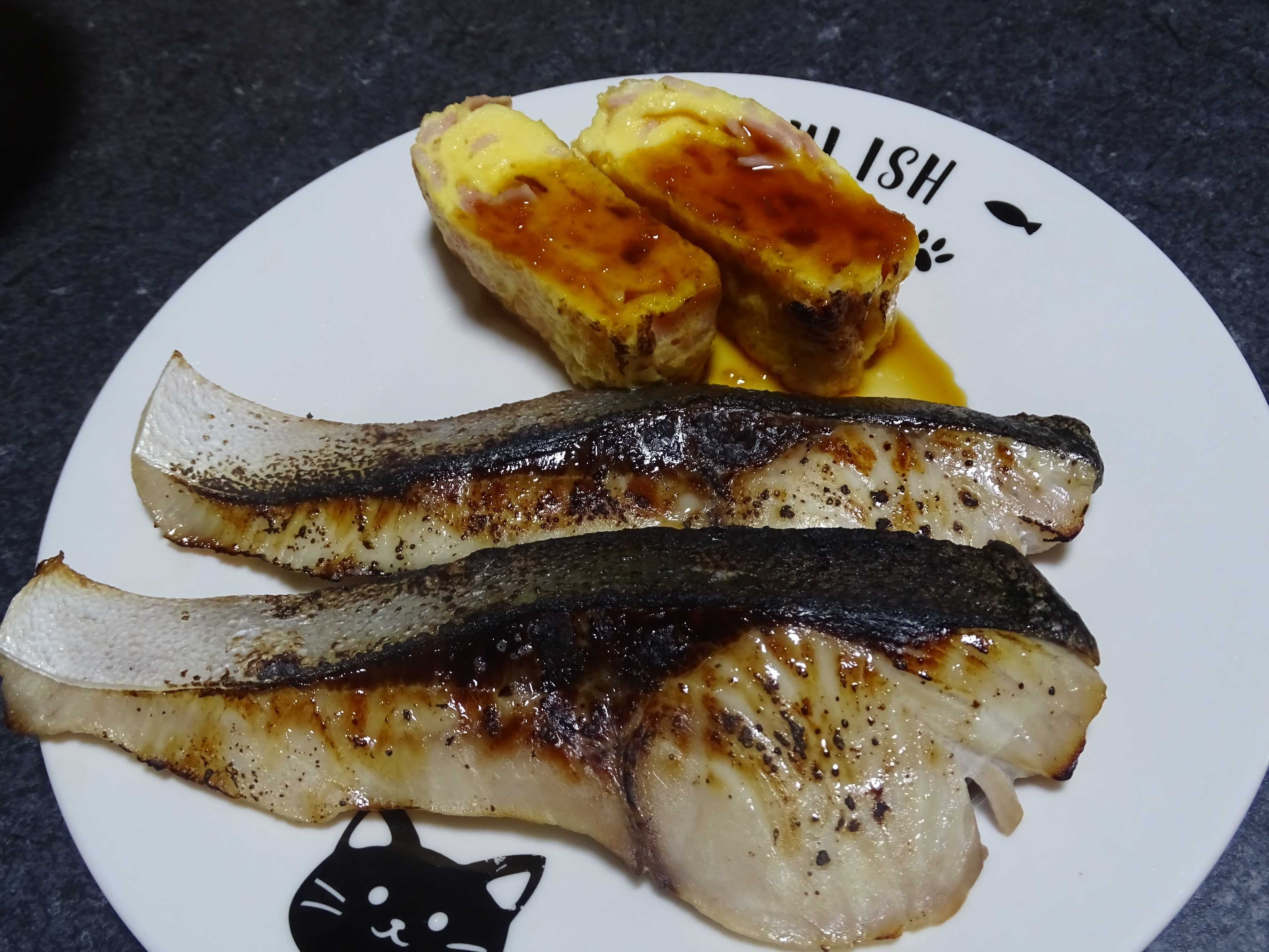 今日の食事は・・買い出しに出かける時に魬を味噌漬けにして・・・