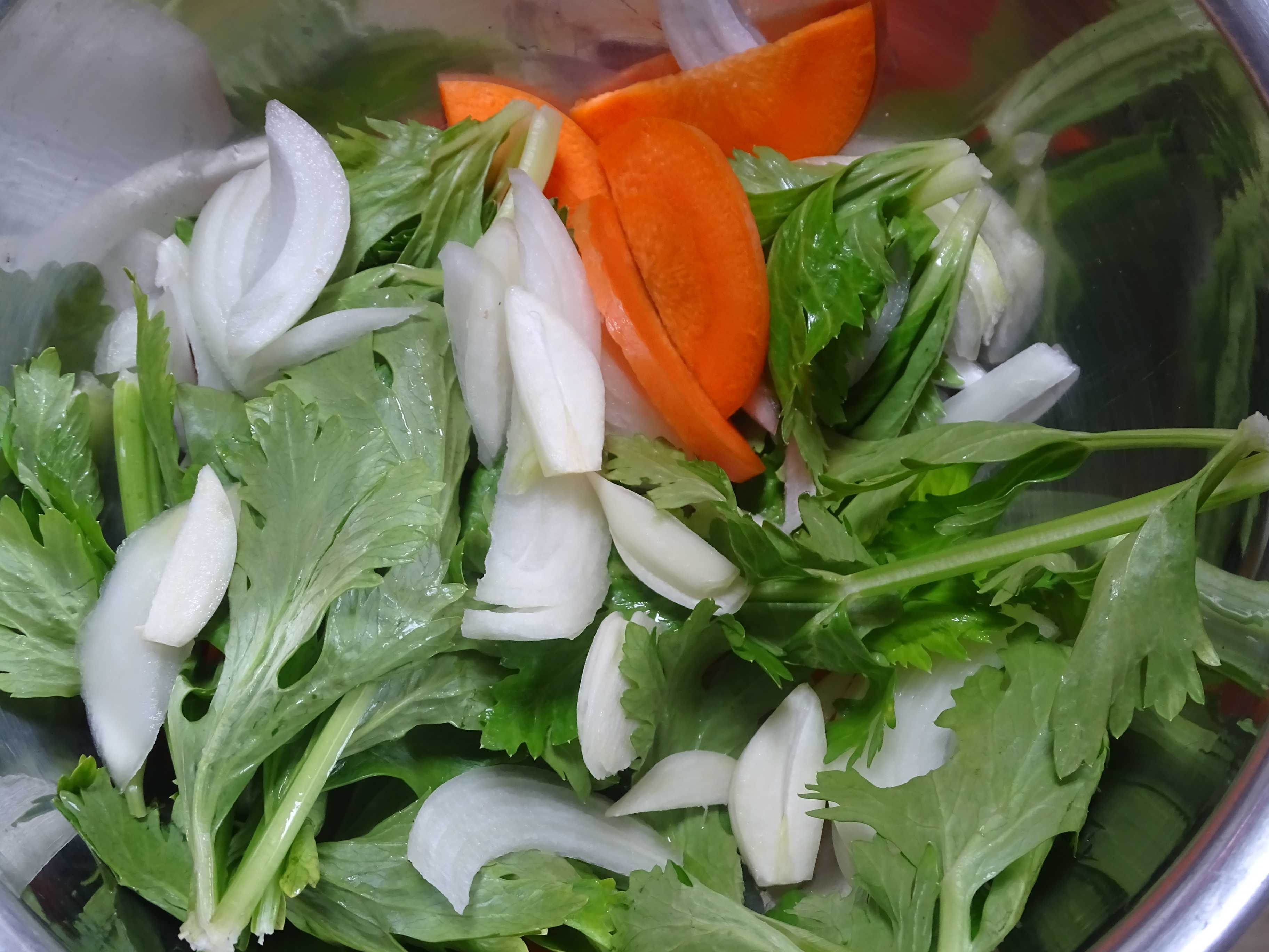 野菜は、セロリの葉・人参・玉葱・大蒜・・・・