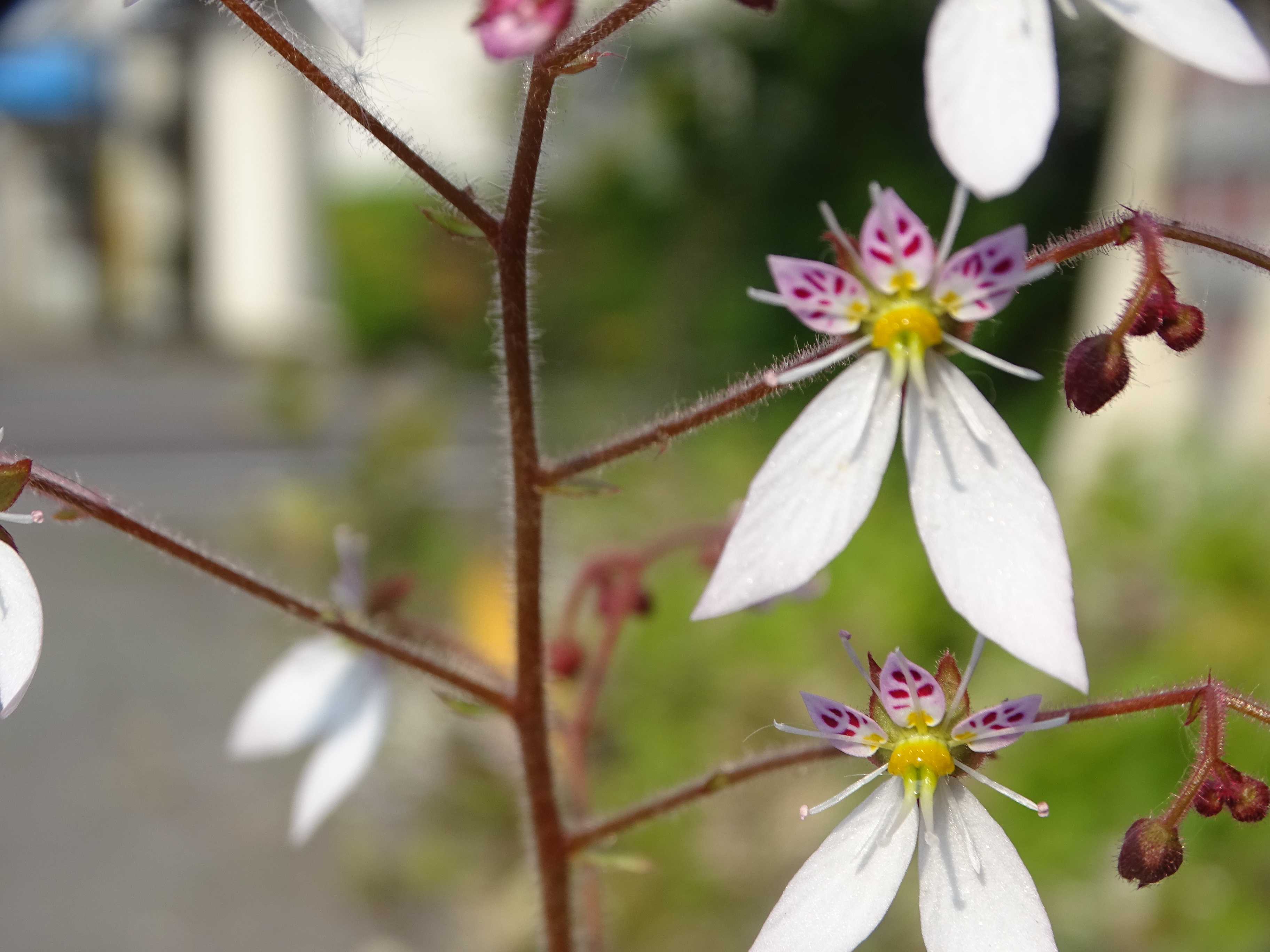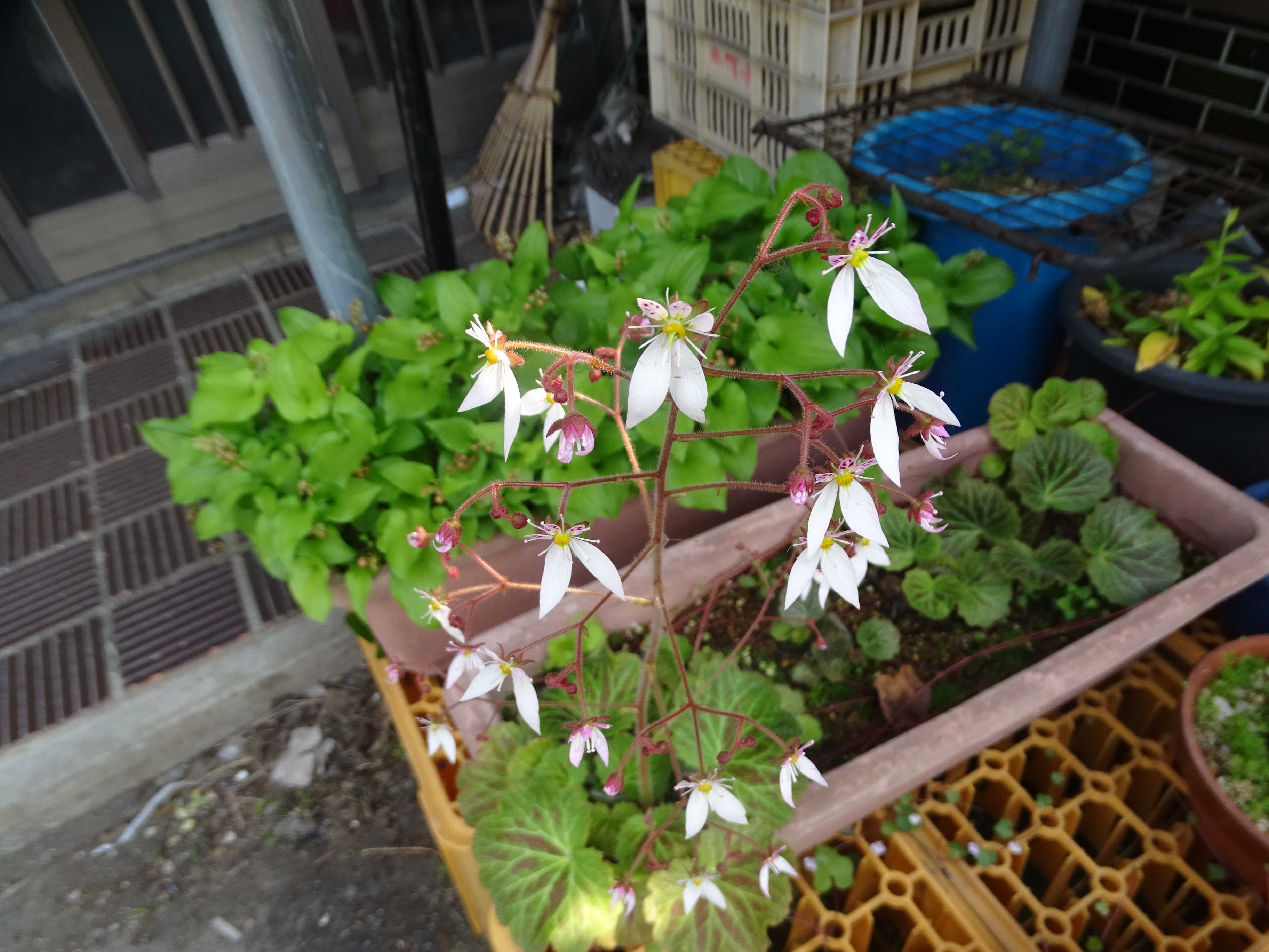 ようやく・・虎耳草とも鴨足草とも言われる我が家の雪ノ下・・・ やっと満開になりましたねぇぇぇぇ といっても今はまだ1株だけなので・・ちょっと寂しいかなぁぁ 来年にはこのプランターいっぱいになってますねぇぇぇ 満開・・とはいえないですよねぇぇ・・まだ蕾がチラホラ・・・・ これは赤なのですが・・白は家の裏の方に育てています・・・ 白が花をつけるのは・・今月末あたりかな・・・ この赤に比べて白は・・じゃっかんなんだけど・・見栄えは・・・ハハハハハ・・です