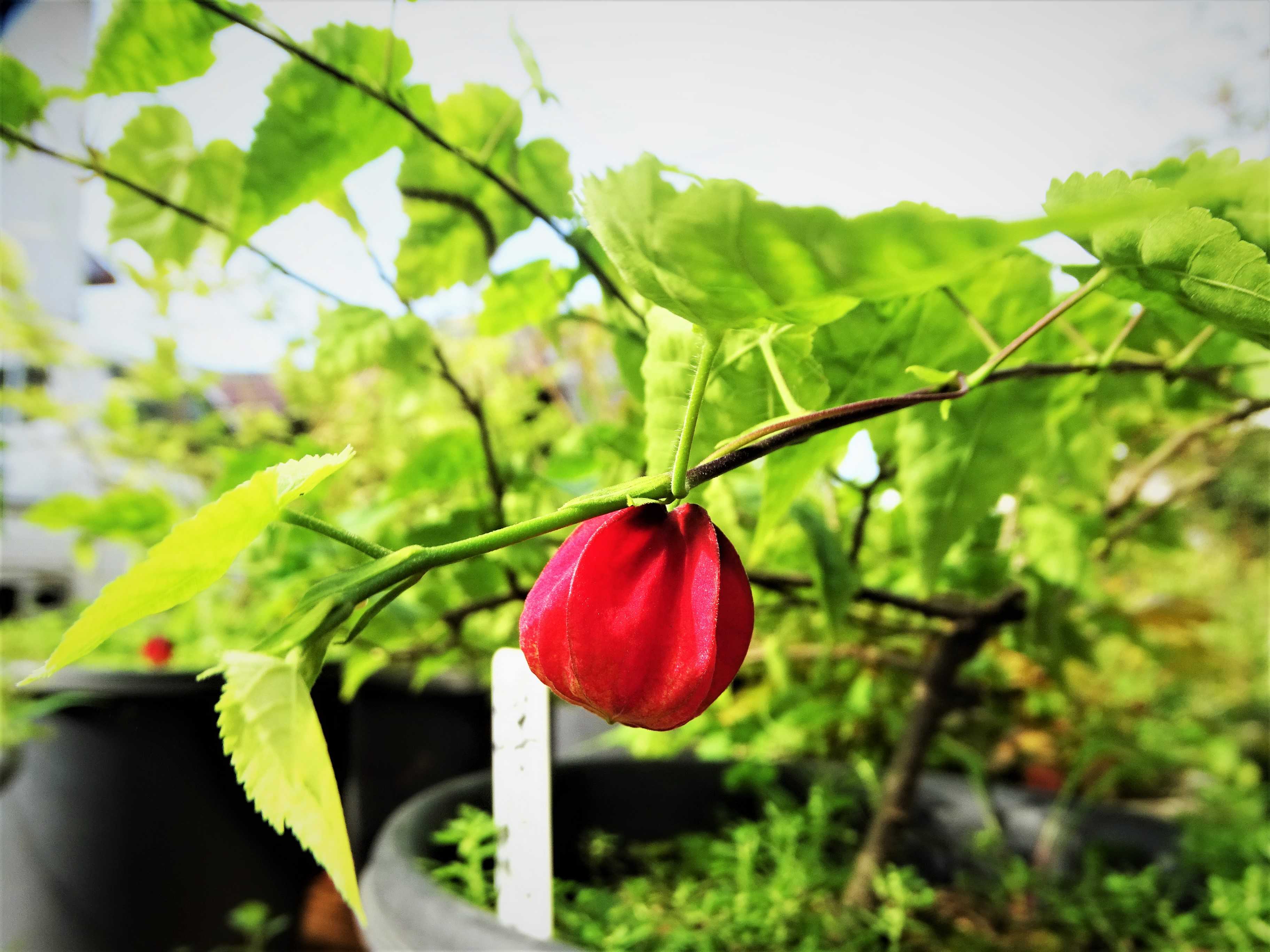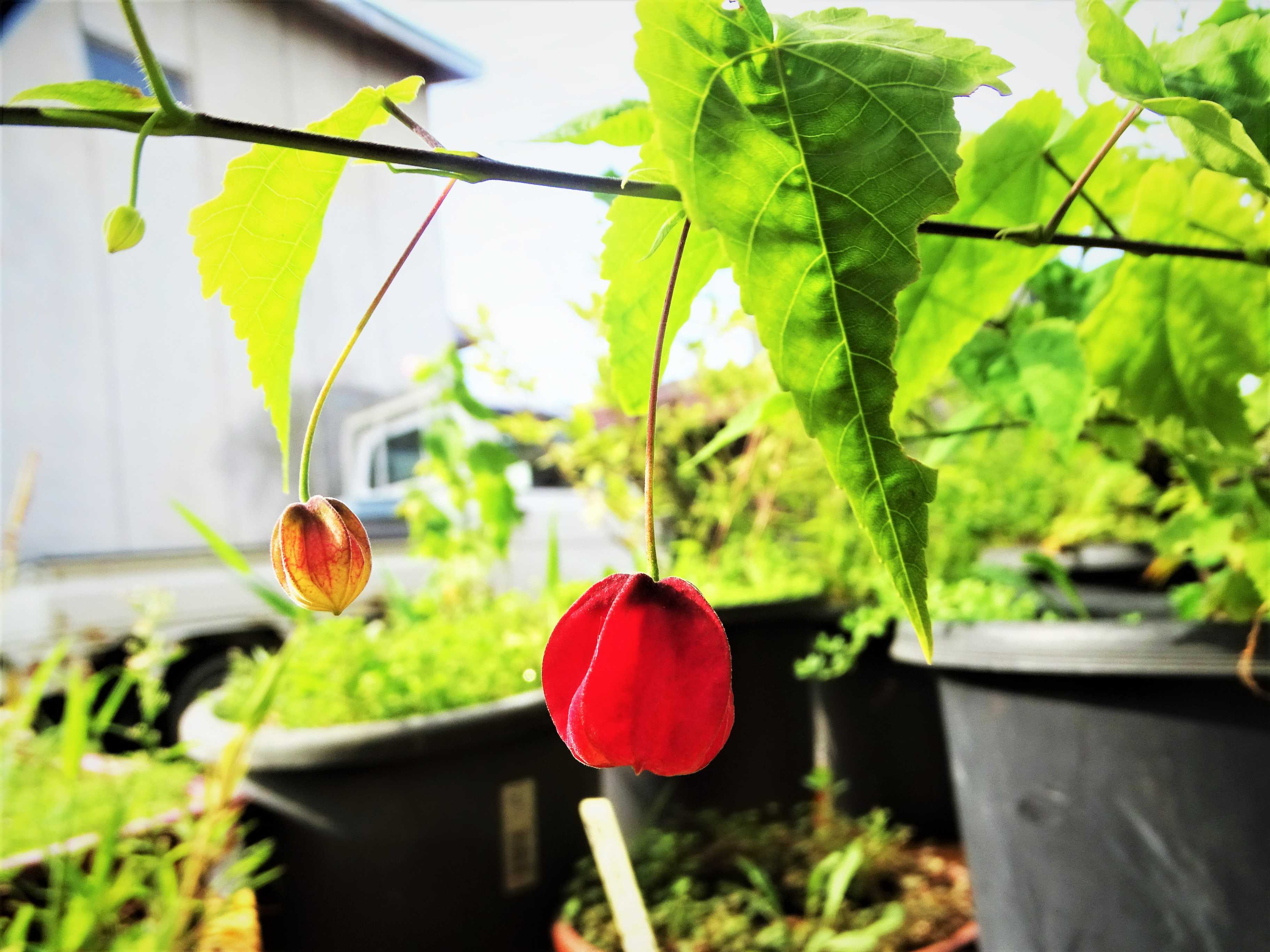アブチロンが中くらいに開き始めた蕾になると散ってしまう・・