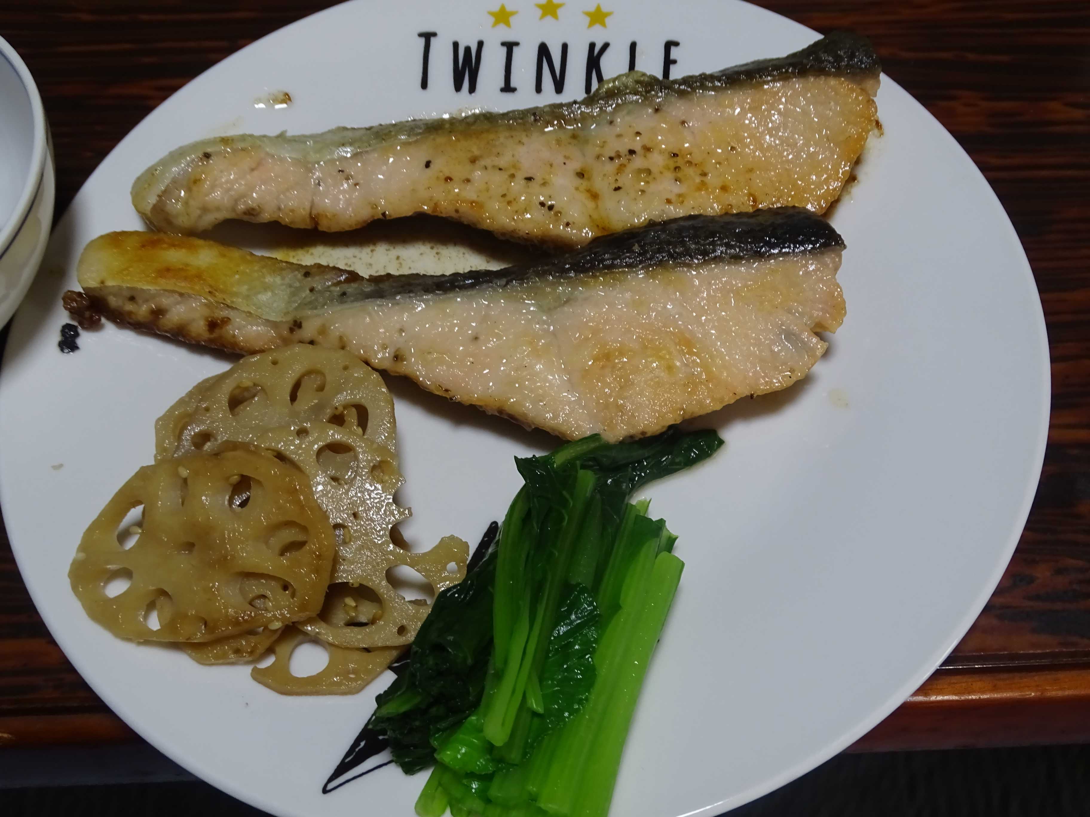 で・・帰宅してからの食事は・・蒟蒻・エビチリソース・鮭バター焼き