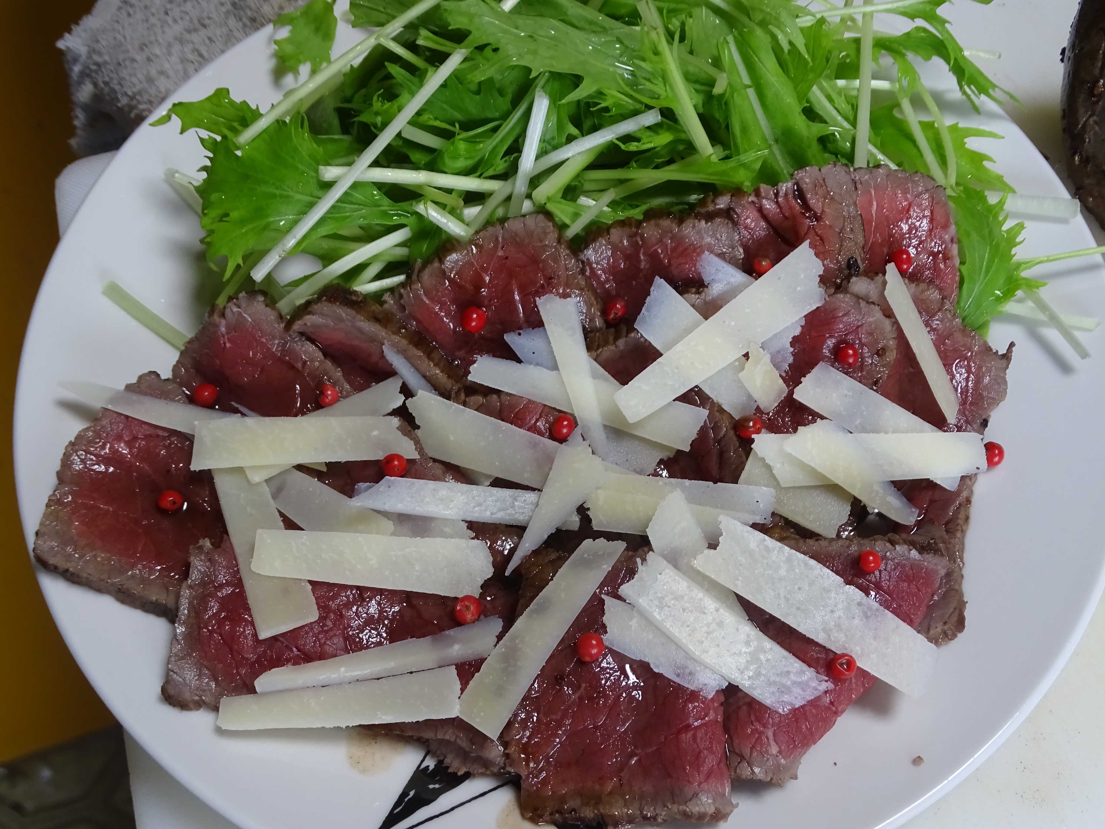 今日の夕飯は 今日は昨日買って来てた牛肉ブロックを・・・朝に下処理を・・・・・ そして・・14:00過ぎから調理・・・・・ 今日の食事は・・牛肉のタリアータ 今日のパルメジャーノはちょっと大きかったなぁぁぁ 以前買ったのは息子と二人分使ってちょうどだったのに・・・今日はか~なり多かった 明日は多かったバルメジャーノを日中のおつまみにでもしますかな 本当はカキフライも・・と思っていたんだけど・・・タリアータでじゅうぶんに多かったから カキフライは明日にまわしますかな