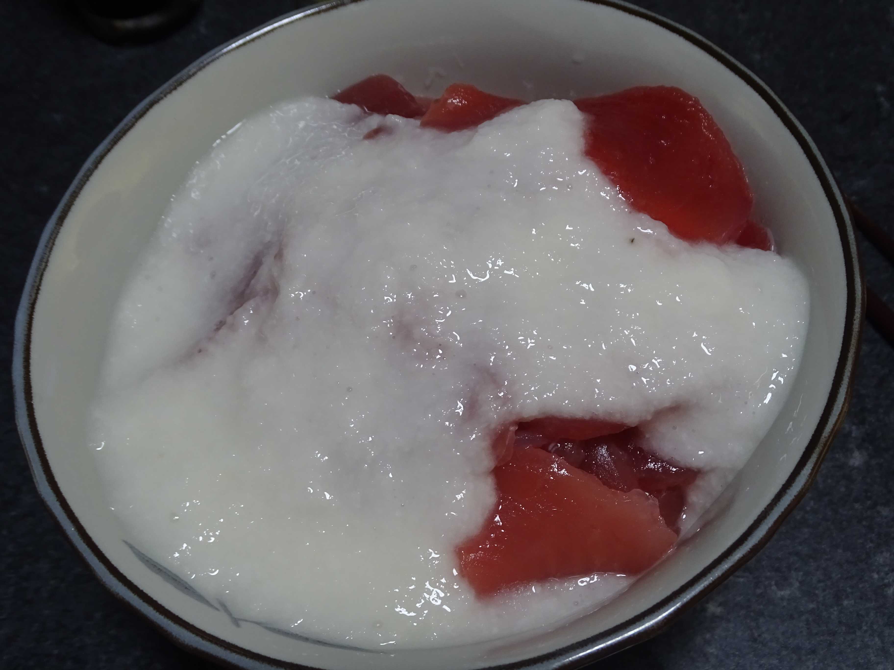 夕飯は 今日は息子を理容院へ連れて行って・・その間に私は食材探し・・・・ けど・・何時もと同じで・・なんか・・・ という事で鮪と長芋をゲット・・・今日は山かけ丼に・・・ 本当は大和芋とか自然薯があれば良かったんだろうけど・・しょうがないよね 長芋は水分がちょっと多いので・・・・ で・・ワサビは無しで・・・・ははははは・・・買い忘れました 今日の現場は近くなんだけど・・時間はユックリで・・・ さてと・・洗い物でも・・・