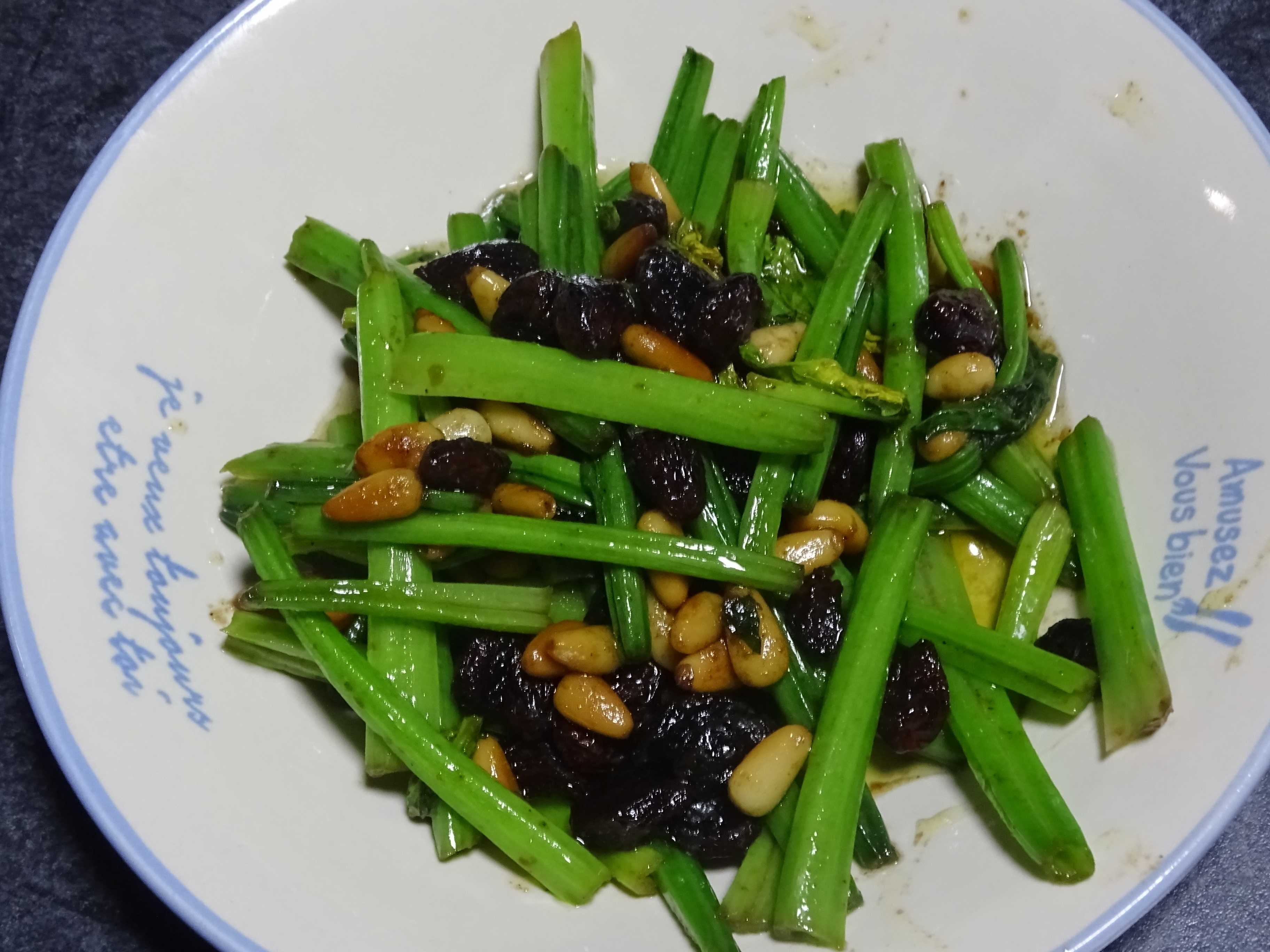 で・・もう一品は・・ほうれん草の松の実レーズン炒め