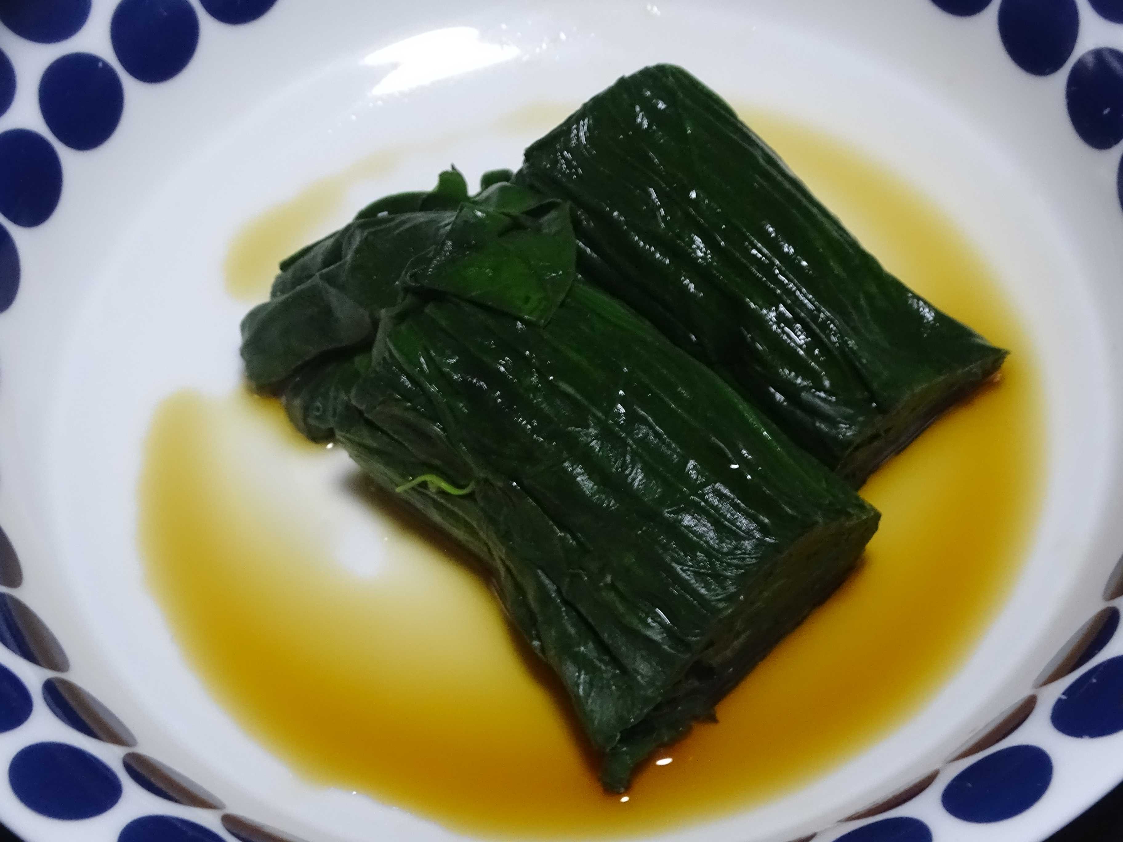 もう一皿は昨日のほうれん草の葉っぱを処理したものです