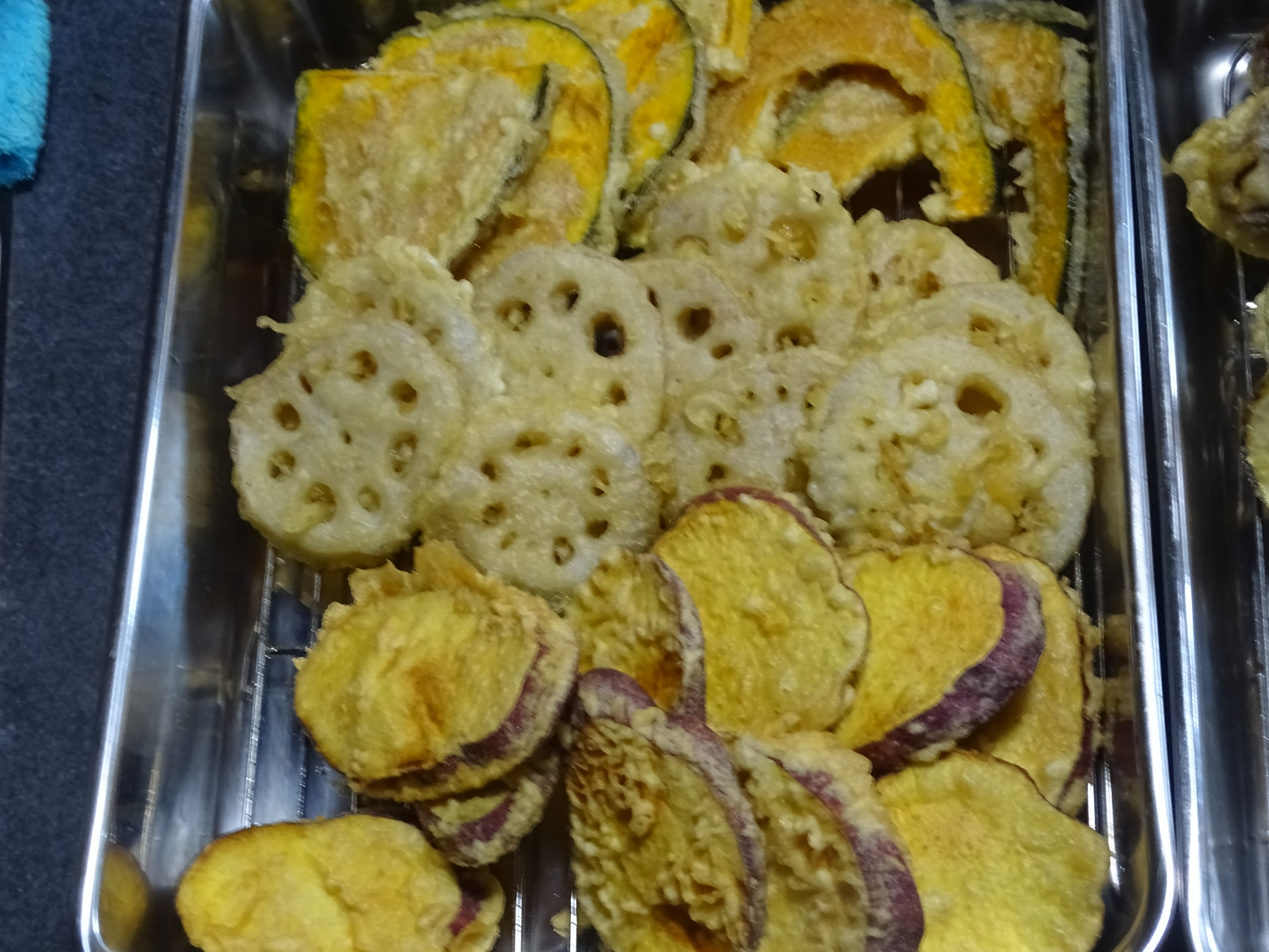 #今日は揚げ物 今日は久しぶりに揚げ物を 本当は暑いからやりたくなかったんだけど・・・まさか連日の麺ではねぇぇぇ という事で・・・南瓜・蓮・サツマイモ・椎茸・茄子・・・・・・ 本当は玉葱も・・と思っていたのですが・・忘れていました これでダメにしなくて済みました・・・ ただストックが無くなったので数日したら買っておきます・・